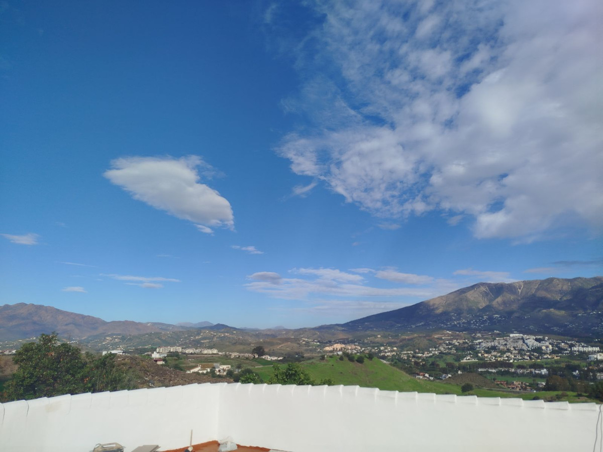 This immaculate 3-bedroom villa with 3 ensuite bathrooms has recently been totally renovated to a high standard. It is set in an elevated position in Cerros de Aguila with unparalled panoramic sea and mountain views. You enter via a long driveway with private parking plus a covered garage for 2 cars and with a good-sized storeroom. There is a gated entrance to the one level villa with an open plan living/dining room and kitchen diner both with access to large terraces with panoramic sea views and to the landscaped gardens with an infinity pool. There are 2 guest bedrooms with ensuites with access to the back garden and terraces, a guest toilet, and a large master bedroom with a feature bath, washbasin and toilet with panoramic views to the sea. The property has underfloor heating in most rooms with electric blinds and hot and cold air conditioning. The property is all fenced and alarmed with terraced gardens with a selection of fruit and palm trees. There is also a roof solarium with panoramic 360-degree views of the mountains and the sea. The property is within easy access to Fuengirola and Mijas, bars, restaurants, beach and the new Mijas park. You also have the well-placed community pool, gardens, sport facilities, bars and shops of the local community of Cerros de Aguila.