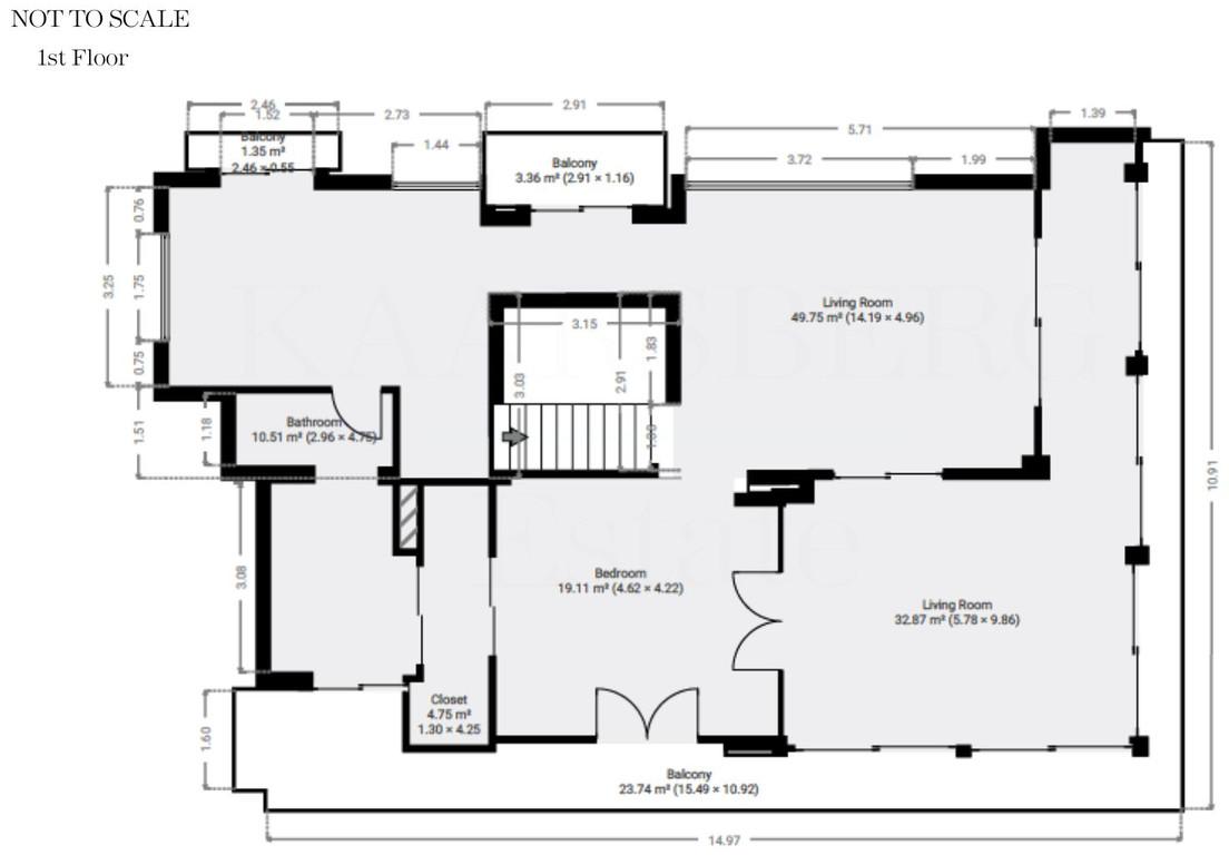 The first floor contains a spacious living room, a bedroom with a walk-in closet, and a luxurious en-suite bathroom. The walk in closet functions as a "hidden door" to the bathroom.