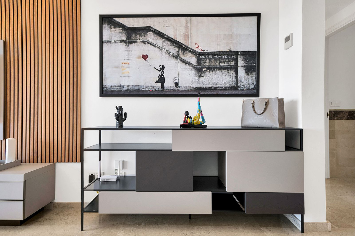 Residents of Elviria Hills benefit from excellent amenities, including a golf course, a communal swimming pool, and the renowned Michelin-starred restaurant "El Lago." The property also comes with a secure underground garage and additional storage space for convenience.