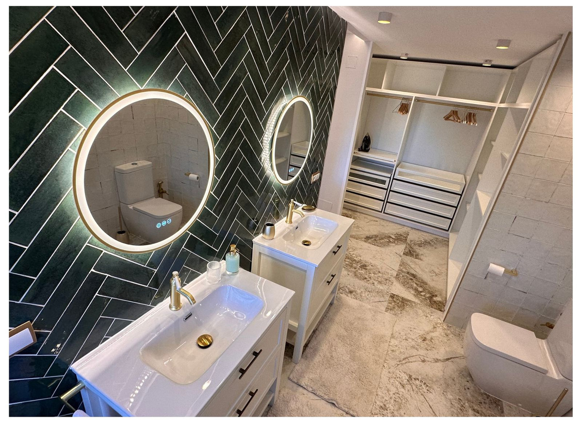 Elegant designer bathrooms, with high-end finishes and stylish details.