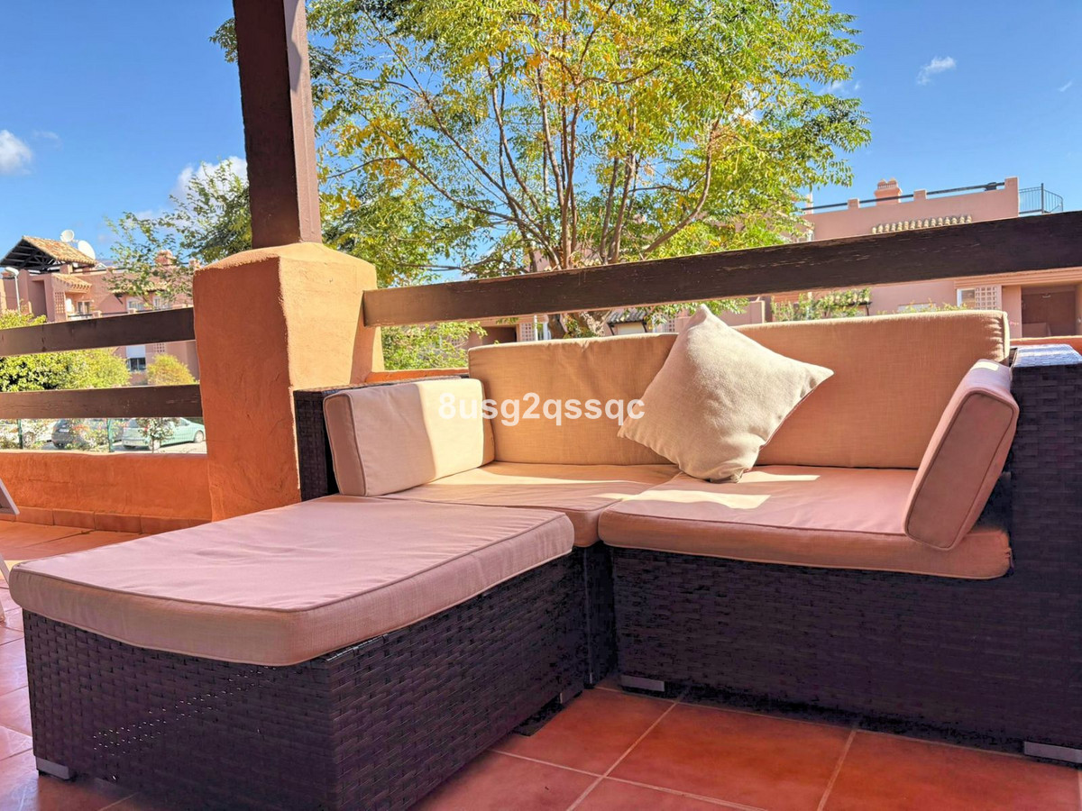 Set within the peaceful gated community this beautifully renovated 2-bedroom, 2-bathroom ground floor apartment offers the perfect blend of comfort and convenience – ideal for seamless indoor-outdoor living. This east-west facing residence offers natural light throughout the day and features a generous covered private terrace perfect for dining while enjoying distant sea views surrounded by lush gardens.