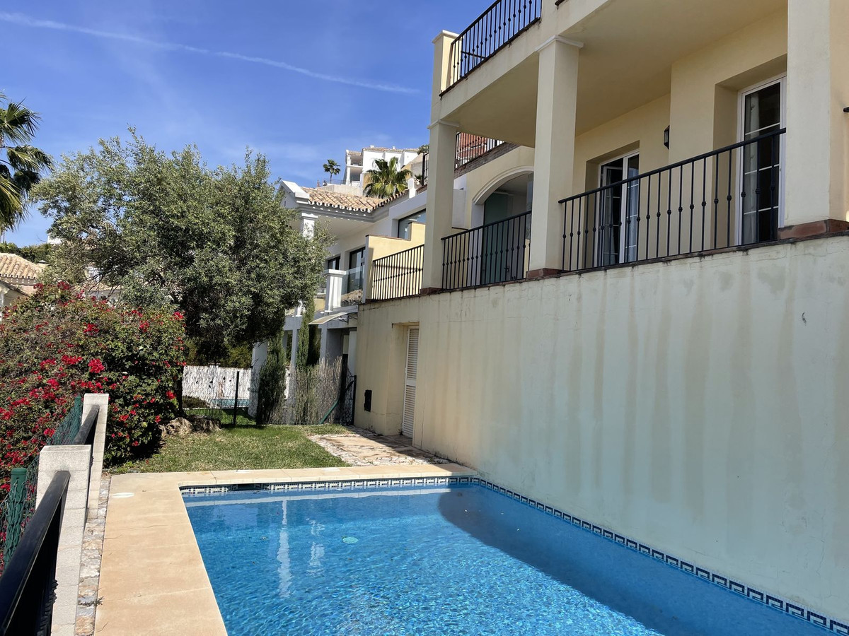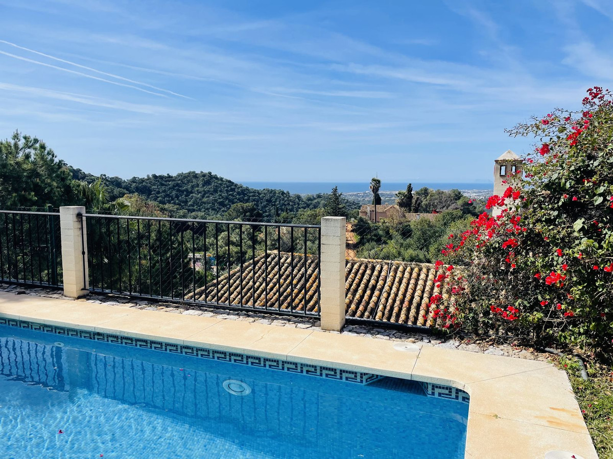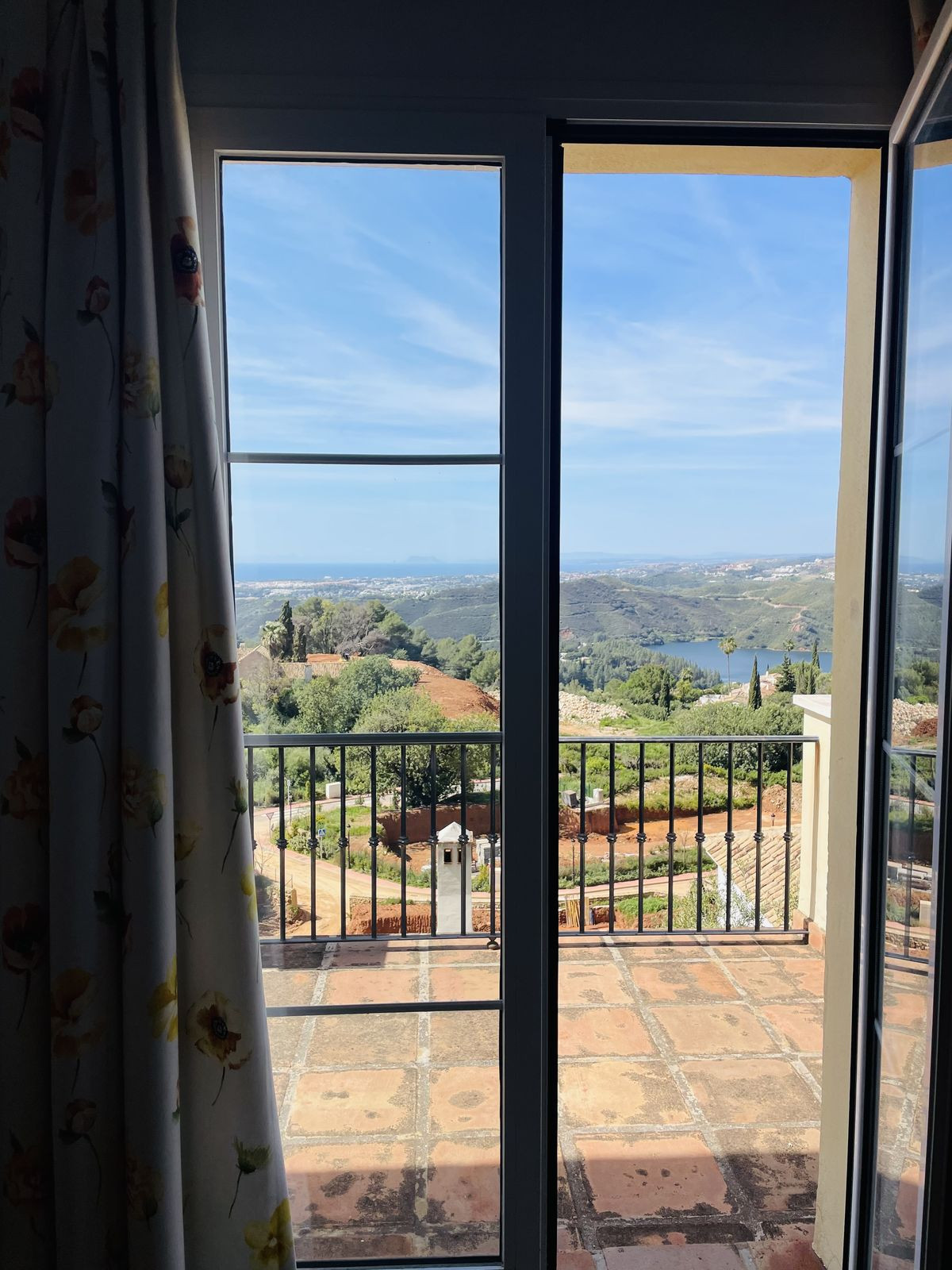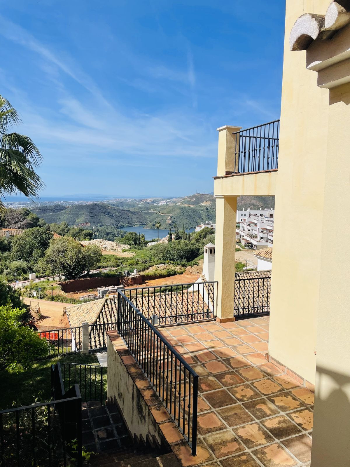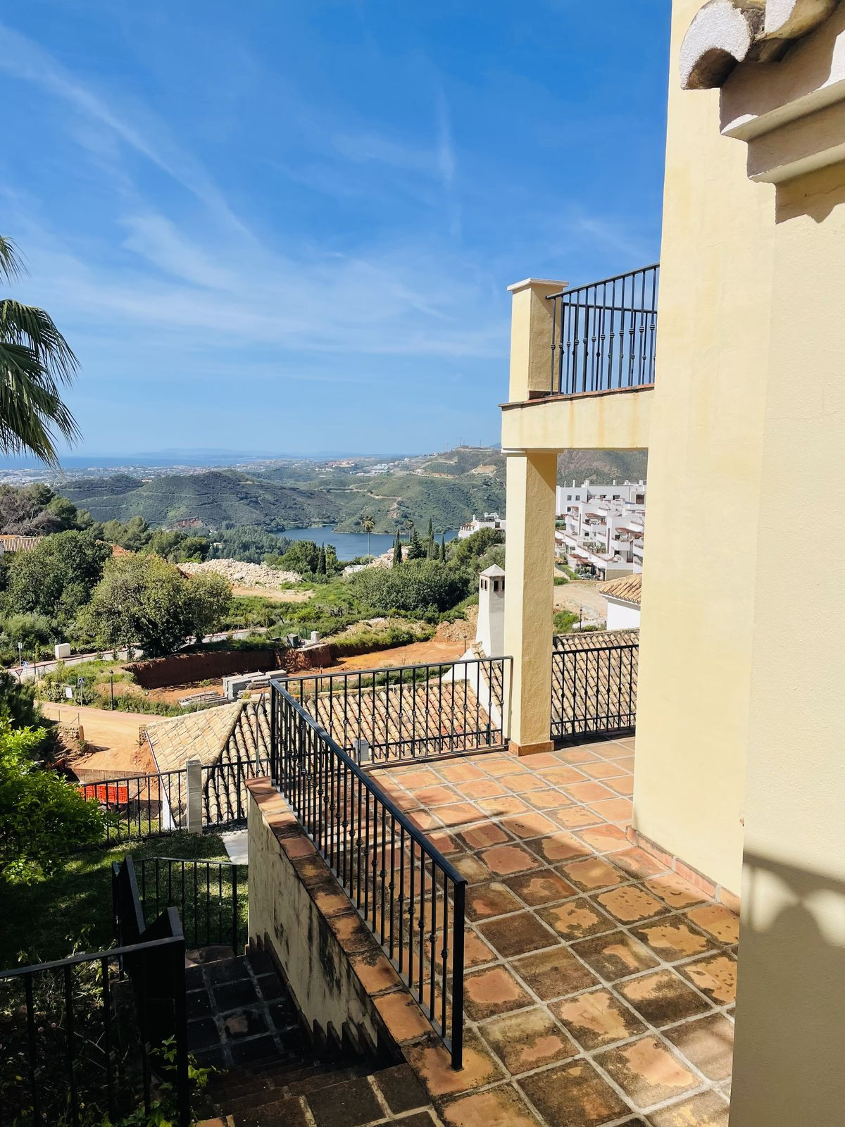 Set within the prestigious gated community of Sierra Blanca Country Club in Istan, this charming semi-detached villa offers breathtaking panoramic views of the Istan Lake and the Mediterranean Sea from every room, including both bathrooms. Just minutes from Marbella, Puerto Banús, and the beach, the property combines natural beauty, privacy, and exceptional lifestyle convenience.