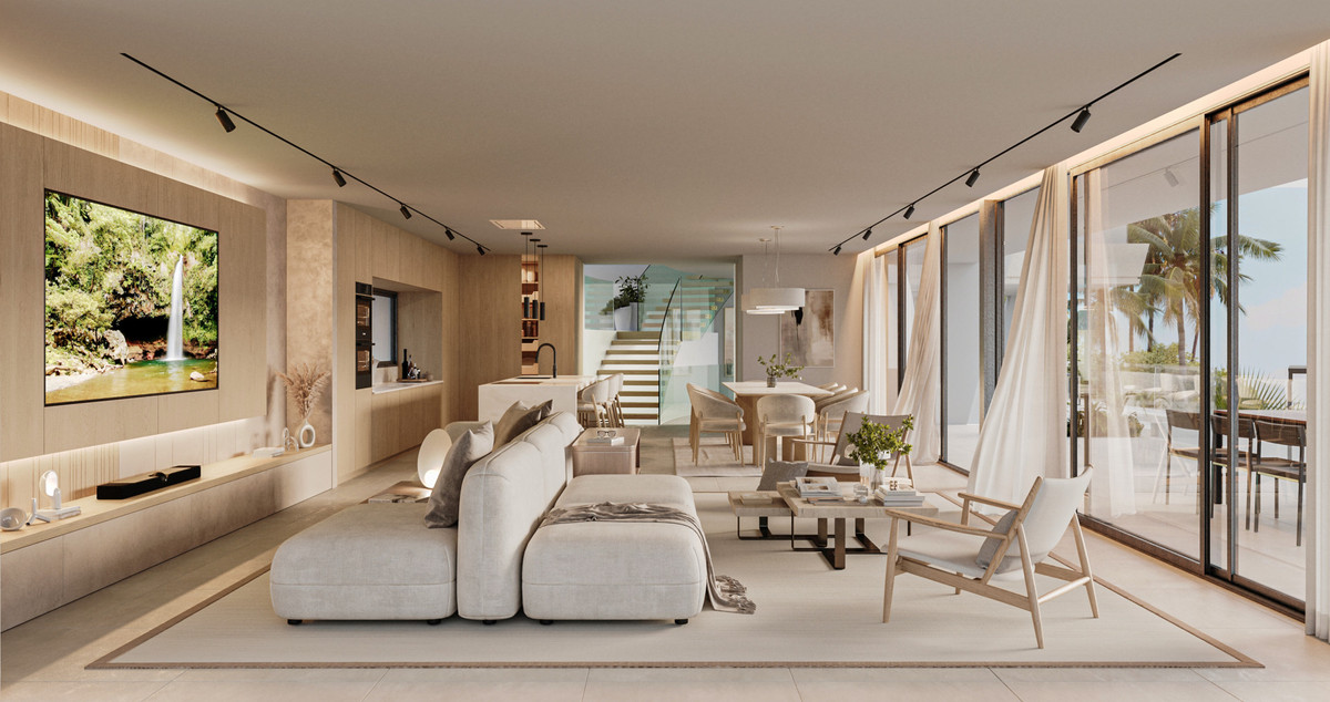 La résidence est construite selon les normes les plus strictes, avec du carrelage grand format Porcelanosa, des armoires italiennes Novamobili et d'élégantes portes intérieures Albed. La cuisine SieMatic sera entièrement équipée d'électroménagers haut de gamme Gaggenau, Liebherr et Technic, tandis que les salles de bains seront dotées d'équipements raffinés signés Villeroy & Boch, Duravit, Bernstein et Hansgrohe.