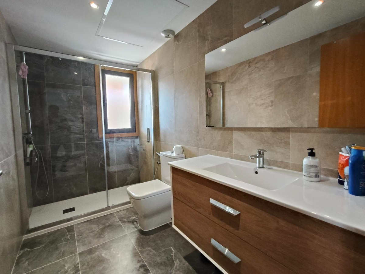 Il comprend deux chambres doubles avec placards intégrés, la chambre principale étant exceptionnellement spacieuse et offrant un espace supplémentaire pour du mobilier supplémentaire. La salle de bains centrale comprend une grande douche à l'italienne avec paroi en verre et un large lavabo, au style moderne et fonctionnel.