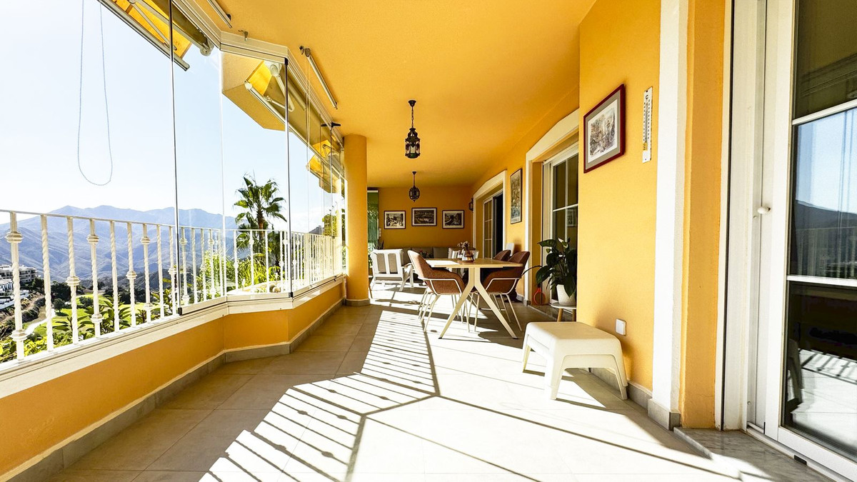 Le complexe immobilier est exceptionnellement bien entretenu, offrant une sensation d'espace et une vue imprenable sur le golf et les montagnes. Il s'apparente davantage à un manoir qu'à un complexe d'appartements espagnol typique. Les équipements communs comprennent le Wi-Fi dans tout l'immeuble, une mini-salle de sport, un sauna, une laverie, des espaces de détente couverts, des jardins tropicaux et une piscine attrayante. À voir absolument.