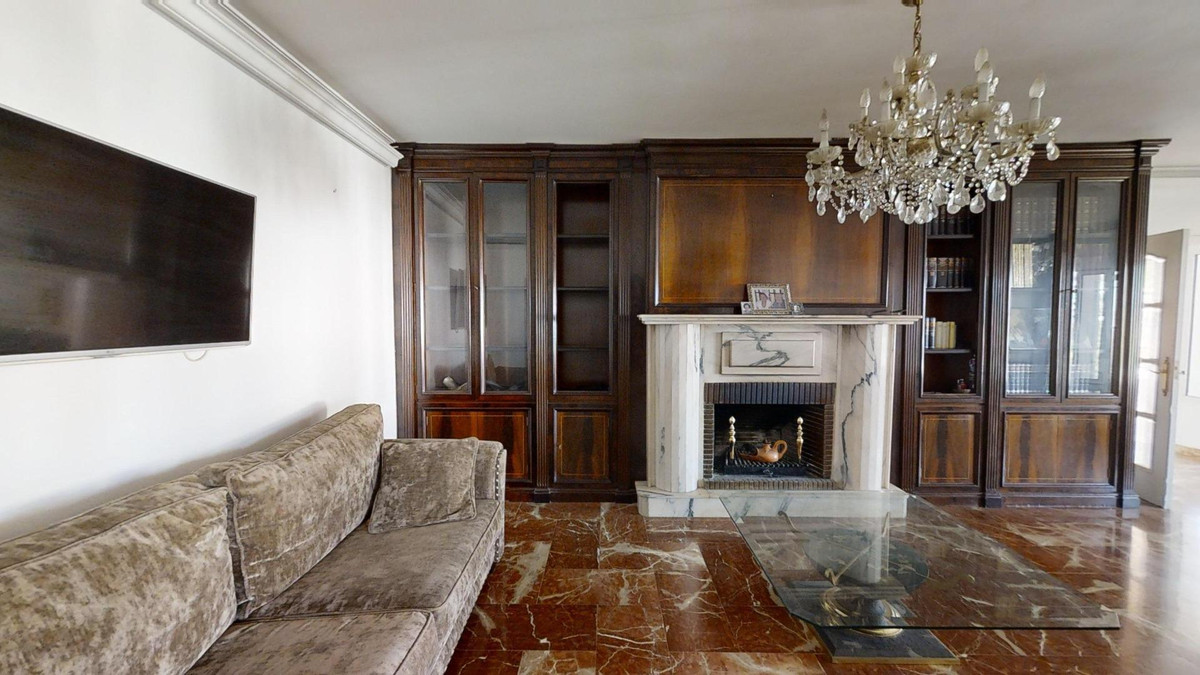 Grand salon-salle à manger avec cheminée, un cadre chaleureux et élégant pour les réunions de famille et les réceptions.