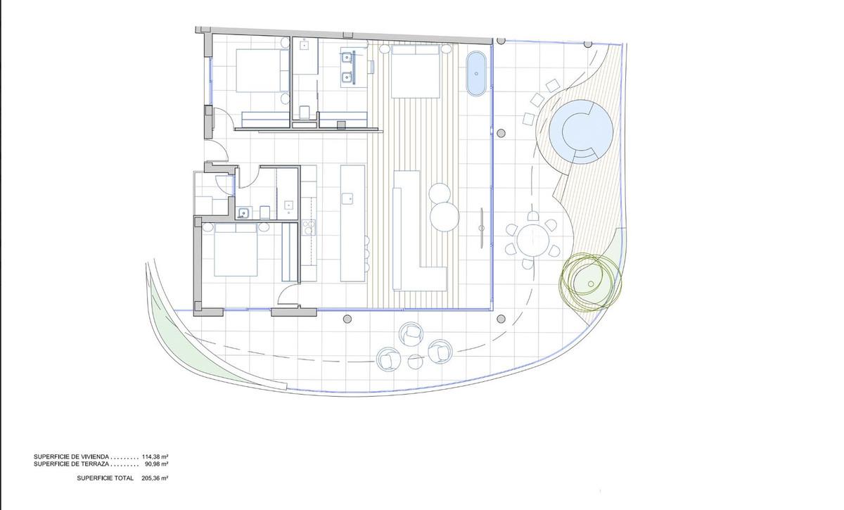 Découvrez une Sky Villa unique de 3 chambres, située à l'angle du bâtiment, sans vis-à-vis. Intimité, luminosité et une ambiance paisible sont au rendez-vous. Le salon s'ouvre directement sur la chambre principale grâce à une baie vitrée coulissante, vous permettant d'ouvrir l'espace à votre guise ou de le fermer pour plus d'intimité. Avec son vaste séjour qui s'étend jusqu'à une terrasse latérale bordée de verre sur toute la hauteur, vous profiterez d'une vue imprenable sur la Méditerranée sous de multiples angles.