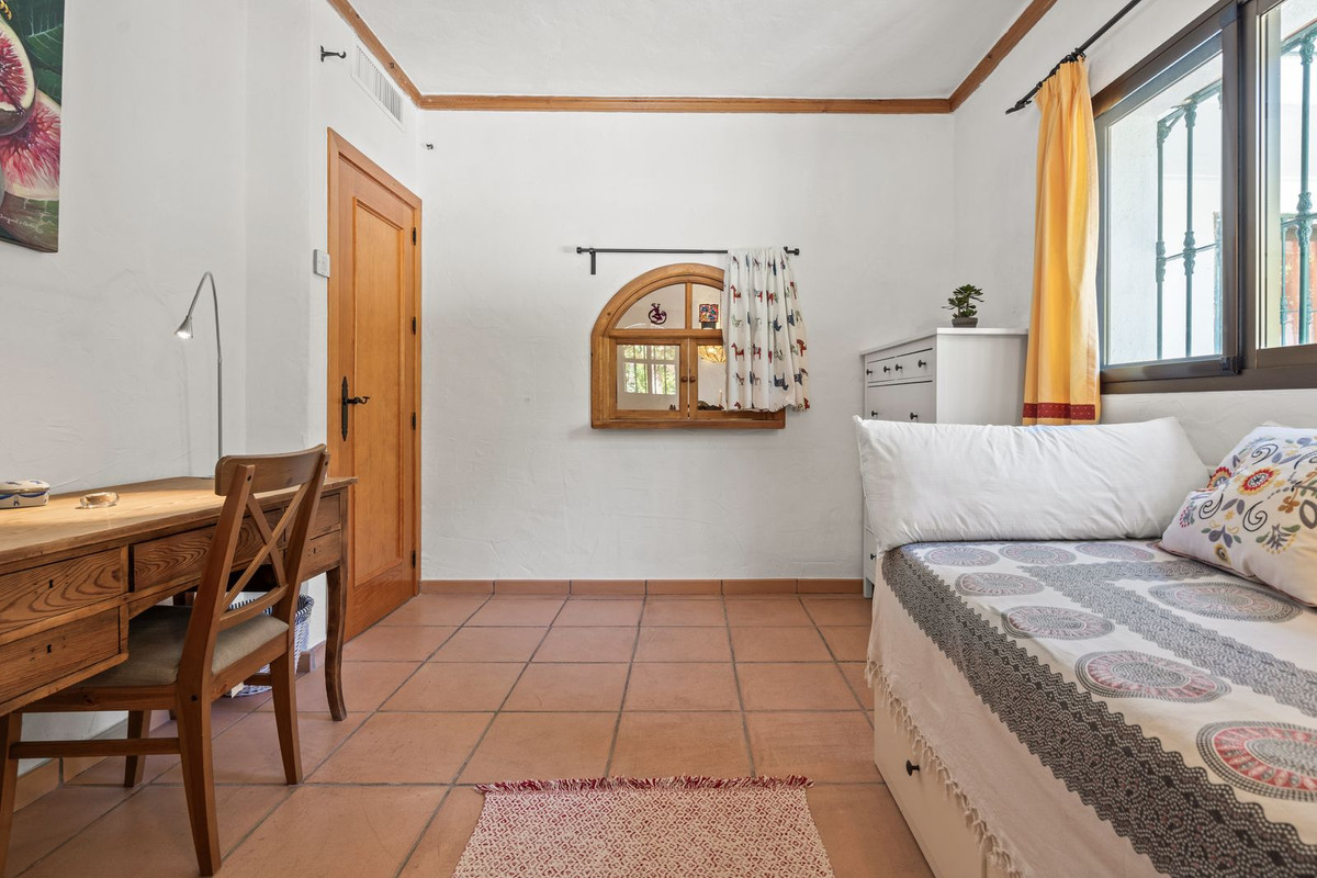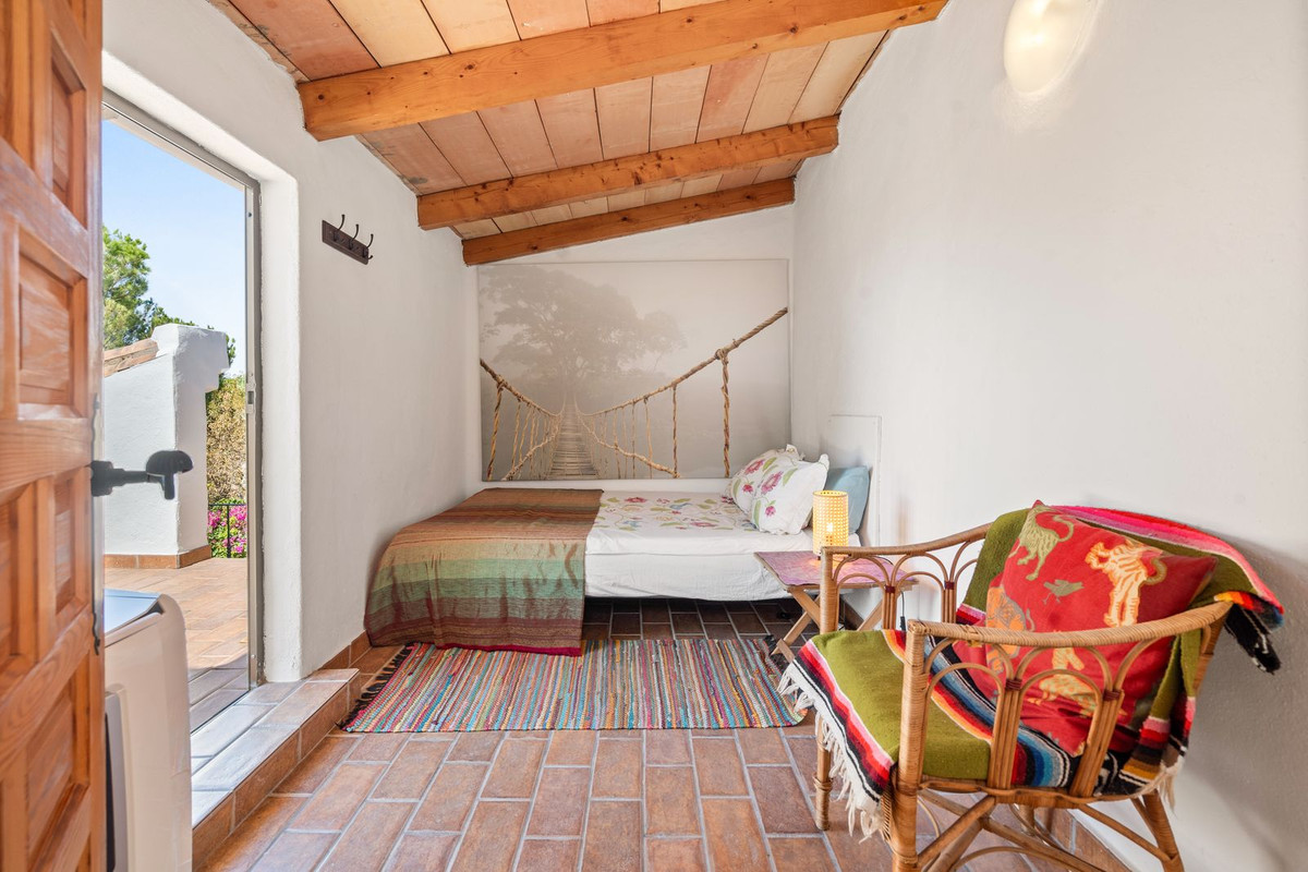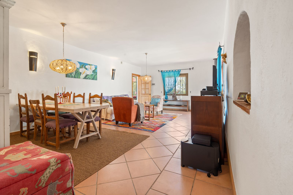 Cette villa de plain-pied, à l'agencement pratique et fluide, conserve le charme authentique d'une maison de campagne. Des détails tels que des plafonds voûtés et à poutres apparentes, des pierres rustiques et du fer forgé décoratif apportent chaleur et personnalité. Une suite d'invités séparée, accessible par un escalier extérieur depuis le patio, assure l'intimité des visiteurs. L'élégante allée, les oliviers, les points d'eau et le verger créent l'atmosphère d'une finca miniature.
