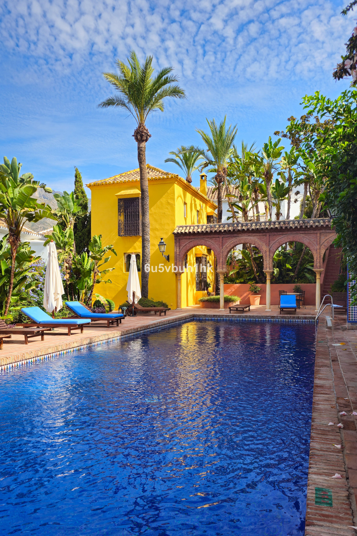 Le visiteur de cette maison de ville sera d'abord frappé par son cadre pittoresque – l'enclave de Lomas Pueblo – où l'architecture blanchie à la chaux et les sentiers sinueux évoquent le charme intemporel d'un village andalou. Idéalement située, elle se trouve à seulement cinq minutes à pied du prestigieux complexe hôtelier de luxe Puente Romano et à proximité du nouveau Forum Center, un lieu élégant idéal pour prendre un café le matin, déjeuner tranquillement ou simplement profiter de l'ambiance animée de Marbella. La plage de sable doré est également à quelques pas, vous offrant le meilleur de la côte à deux pas.
