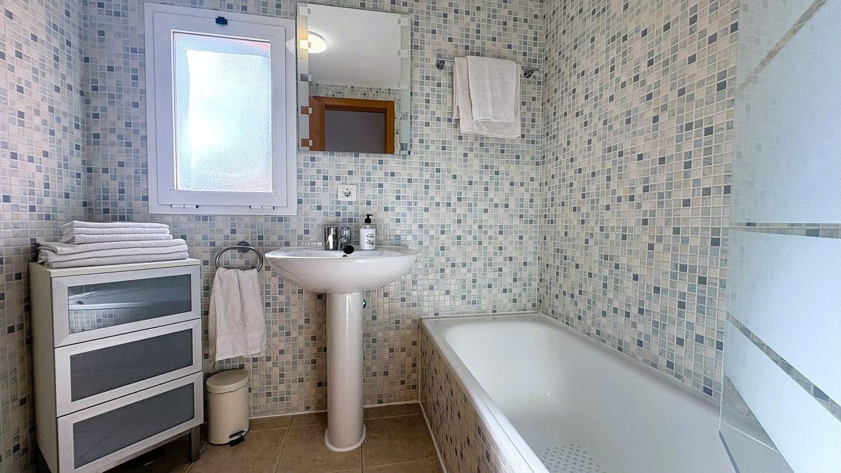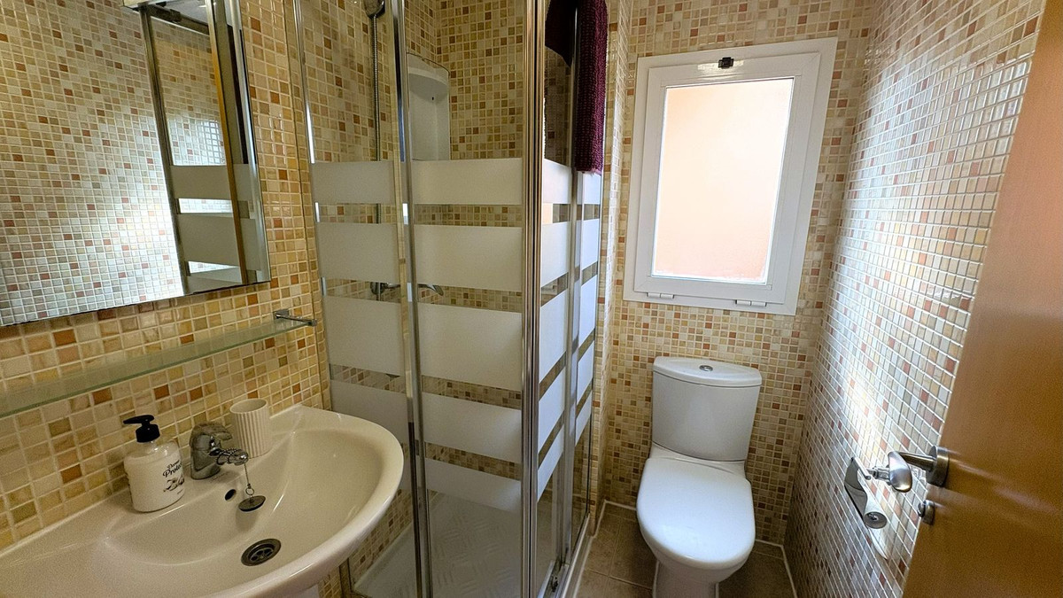 Le salon et la salle à manger lumineux s'ouvrent directement sur la terrasse, créant une harmonie parfaite entre intérieur et extérieur. Une cuisine entièrement équipée avec buanderie séparée offre un confort optimal, tandis que les deux chambres doubles spacieuses sont dotées de placards intégrés. La chambre principale bénéficie de sa propre salle de bains privative, ainsi que d'une salle d'eau familiale indépendante.