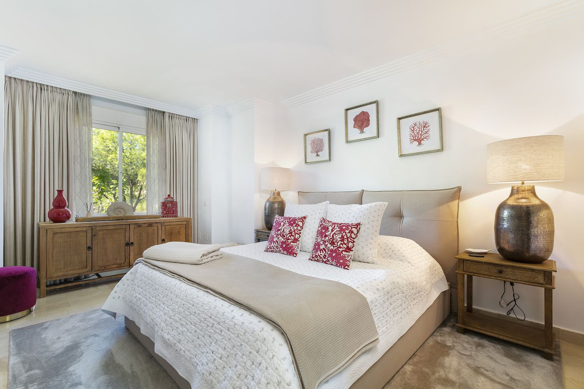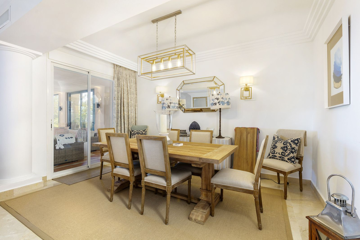 Cet appartement de trois chambres magnifiquement rénové allie élégance intemporelle et sophistication moderne, offrant une vie raffinée dans l'une des communautés fermées les plus prestigieuses de Nueva Andalucía.