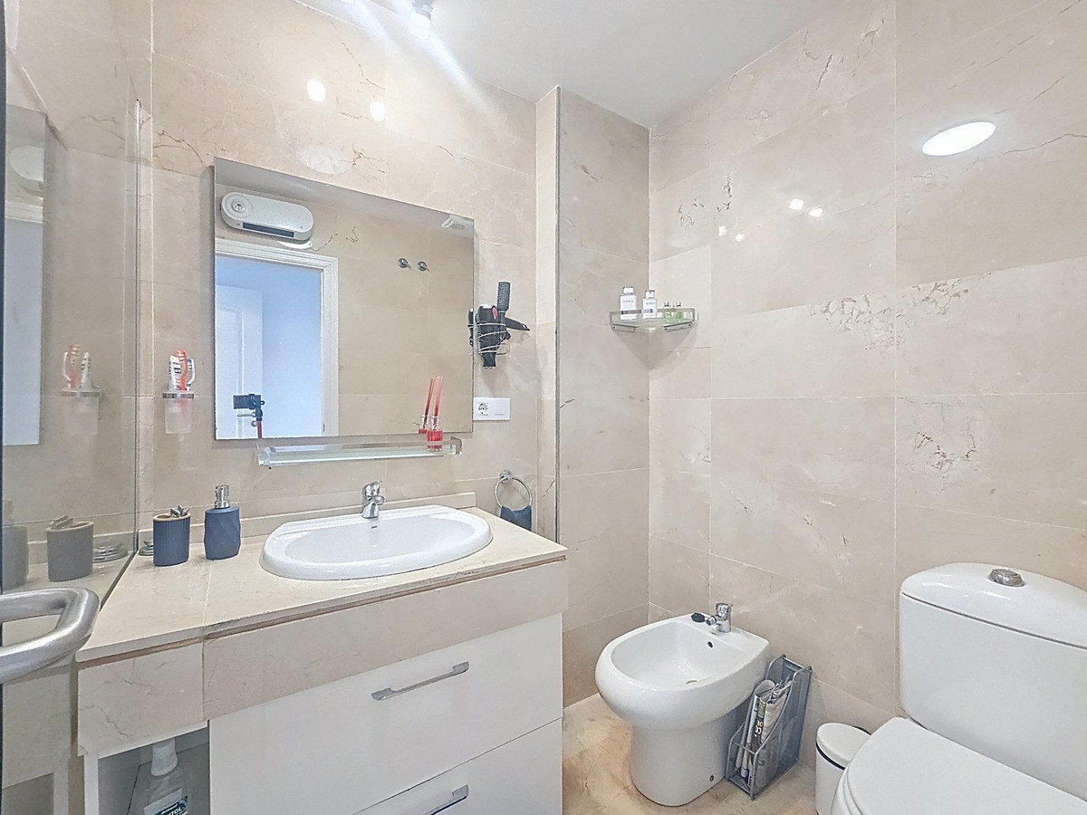 L'appartement comprend deux chambres confortables et deux salles de bains décorées avec goût. Le séjour spacieux et chaleureux s'ouvre sur une grande terrasse privée, idéale pour profiter de la douceur du climat de la Costa del Sol, partager des repas en plein air ou se détendre au calme.