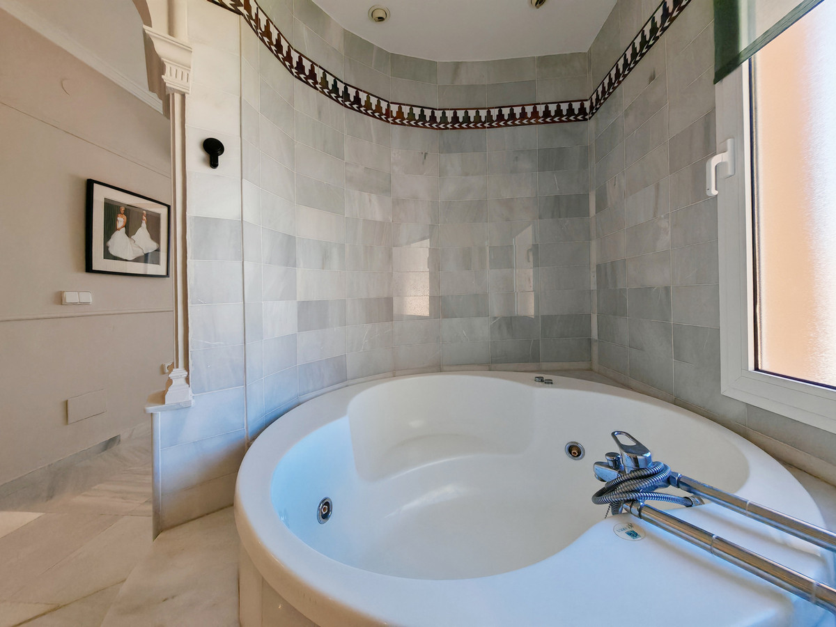 Maison jumelée à vendre à Mijas Costa, avec 3 chambres, 3 salles de bains et exposition sud-ouest, avec piscine commune, garage privé (1 place de parking) et jardin privé. Elle dispose de 139 m² habitables et de 27 m² de terrasse. Elle dispose des équipements suivants : commodités à proximité, transports à proximité, climatisation, cuisine équipée, buanderie, cheminée, chambre d'amis, débarras, alarme, salle à manger, terrasse privée, cuisine équipée, salon, vue sur le golf, buanderie, internet wi-fi, terrasse couverte, placards, résidence fermée, non meublée, aire de jeux pour enfants à proximité, mer/plage à proximité, golf à proximité, terrasse découverte, balcon, bon état, vue sur la ville, commerces à proximité, ville à proximité et écoles à proximité.