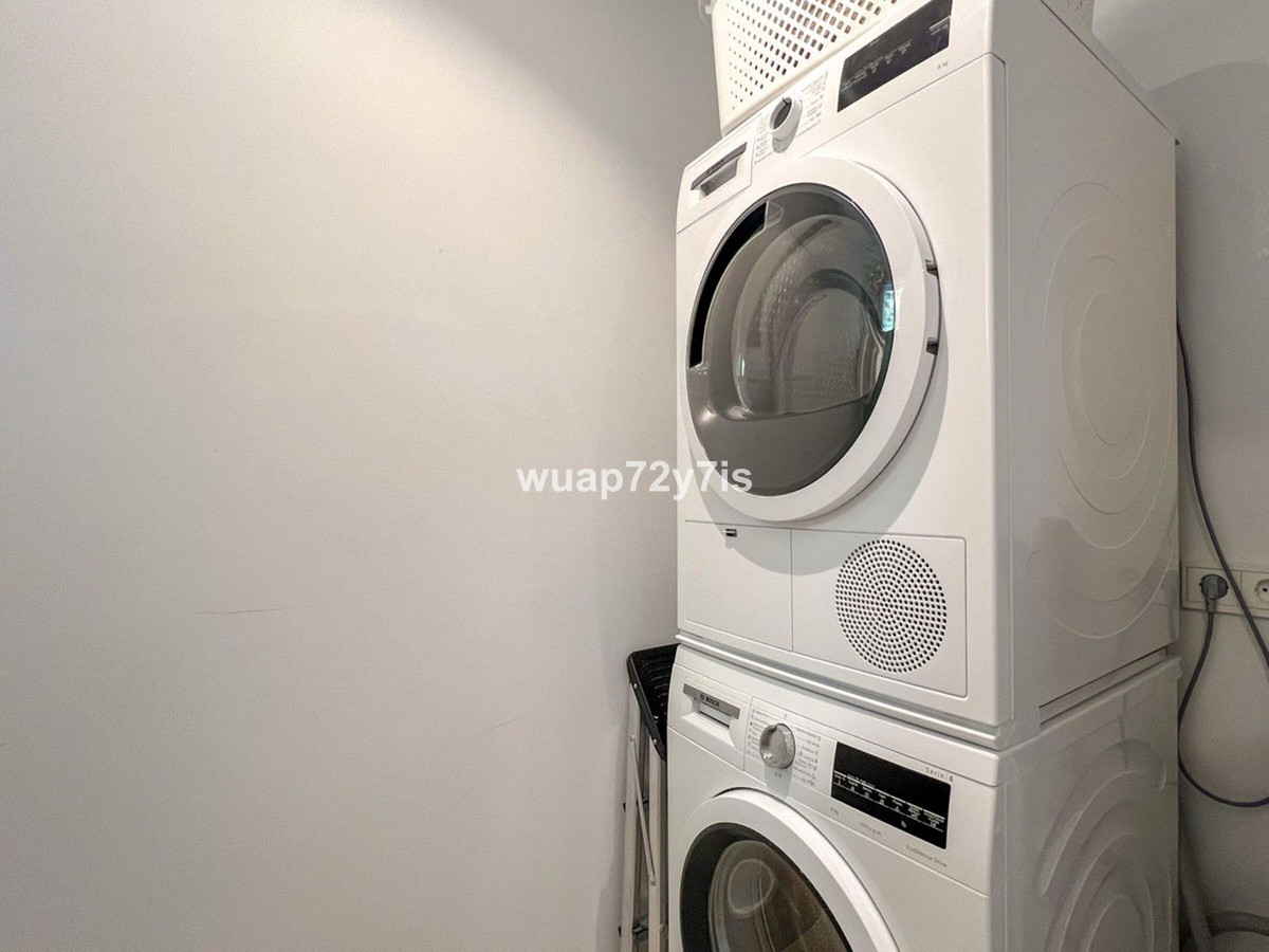 En entrant dans cette charmante maison de ville, un escalier mène directement au spacieux séjour, ouvert sur une cuisine entièrement équipée. De là, des portes coulissantes s'ouvrent sur une terrasse ensoleillée avec jardin privé, idéal pour se détendre, bronzer ou recevoir des invités. Profitez d'une vue panoramique imprenable sur la mer et les montagnes environnantes, tandis qu'un espace barbecue dédié rend les repas en plein air particulièrement agréables. Au même étage, vous trouverez également des toilettes invités et une buanderie.