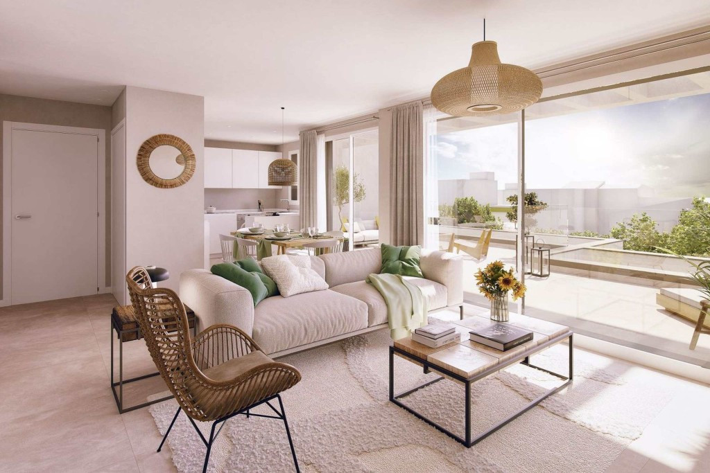 The living rooms lead directly to a large terrace where you can enjoy the Mediterranean climate all year round, stunning views, the attractive gardens and a large communal pool. The development also offers as an extra the possibility of installing a Jacuzzi, outdoor kitchens, etc. on the large terraces.