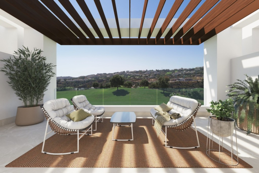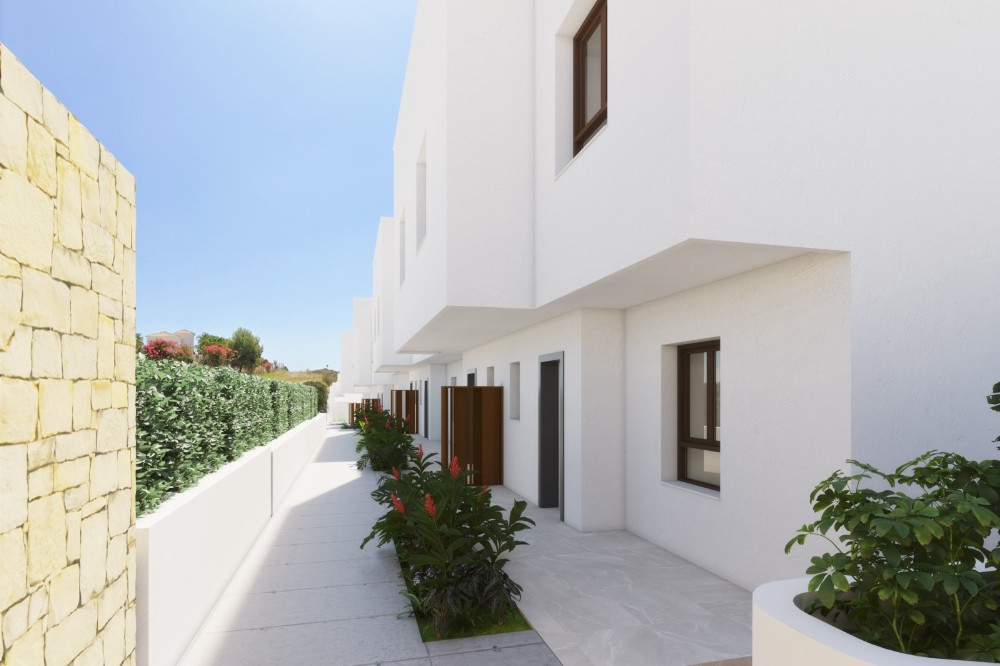 This is a new private development with 26 exclusive and contemporary 3- bedroom townhouses with 3 bedrooms from 620,000 euiros (excl. 10% VAT) with panoramic views of La Cala Golf A fantastic South orientation, the unique golf-front position, a combination of the finest quality materials and the sophisticated design, surrounded by a natural scenery, makes The Meadows the ideal home in La Costa del Sol. Interior open spaces that flow to spectacular terraces. A private gated community with large communal gardens and a swimming pool with outstanding golf views.