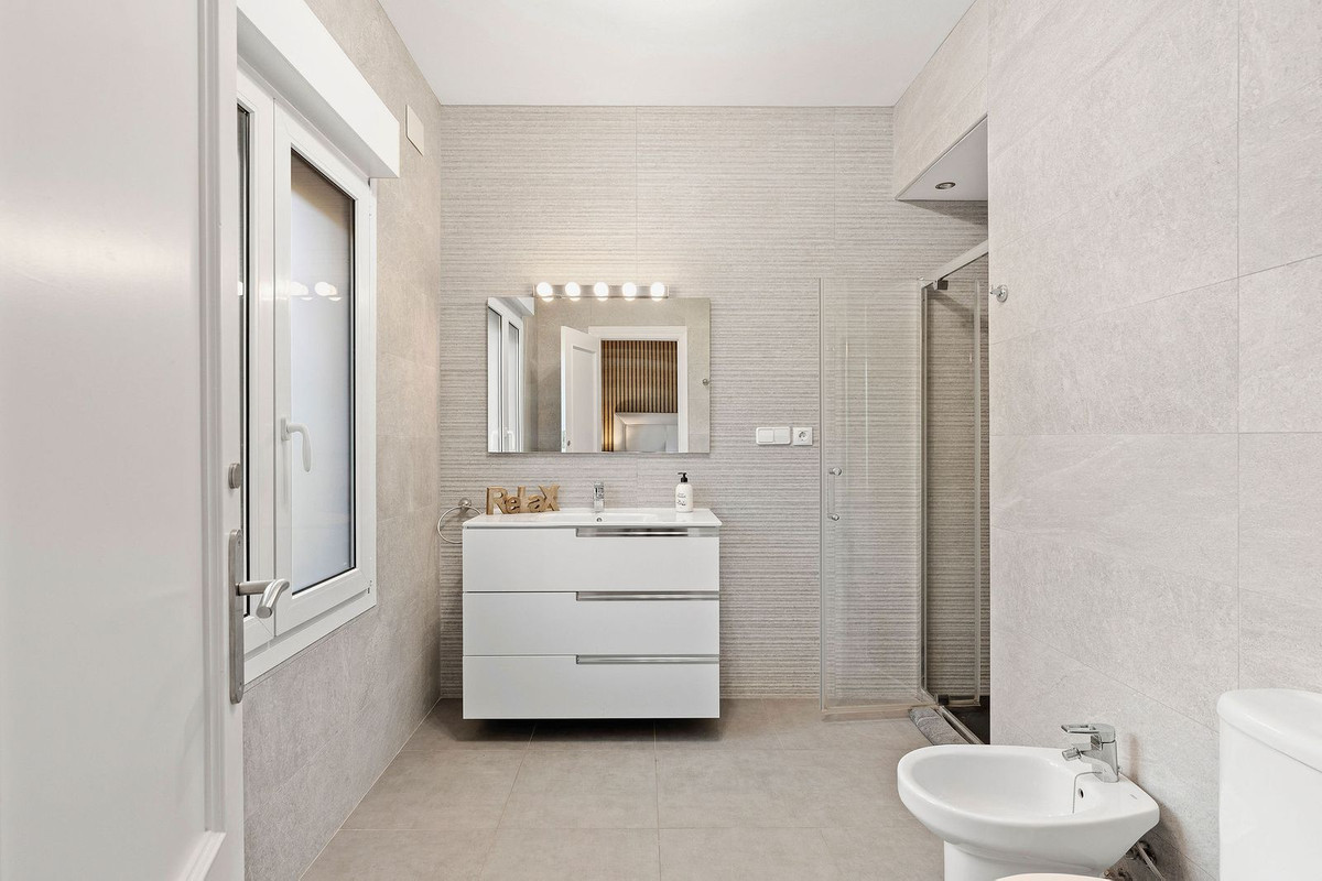 En entrant dans la villa, vous trouverez un spacieux séjour donnant sur la cuisine et la salle à manger. À ce niveau se trouvent également la suite parentale et une chambre d'amis avec salle de bains séparée.