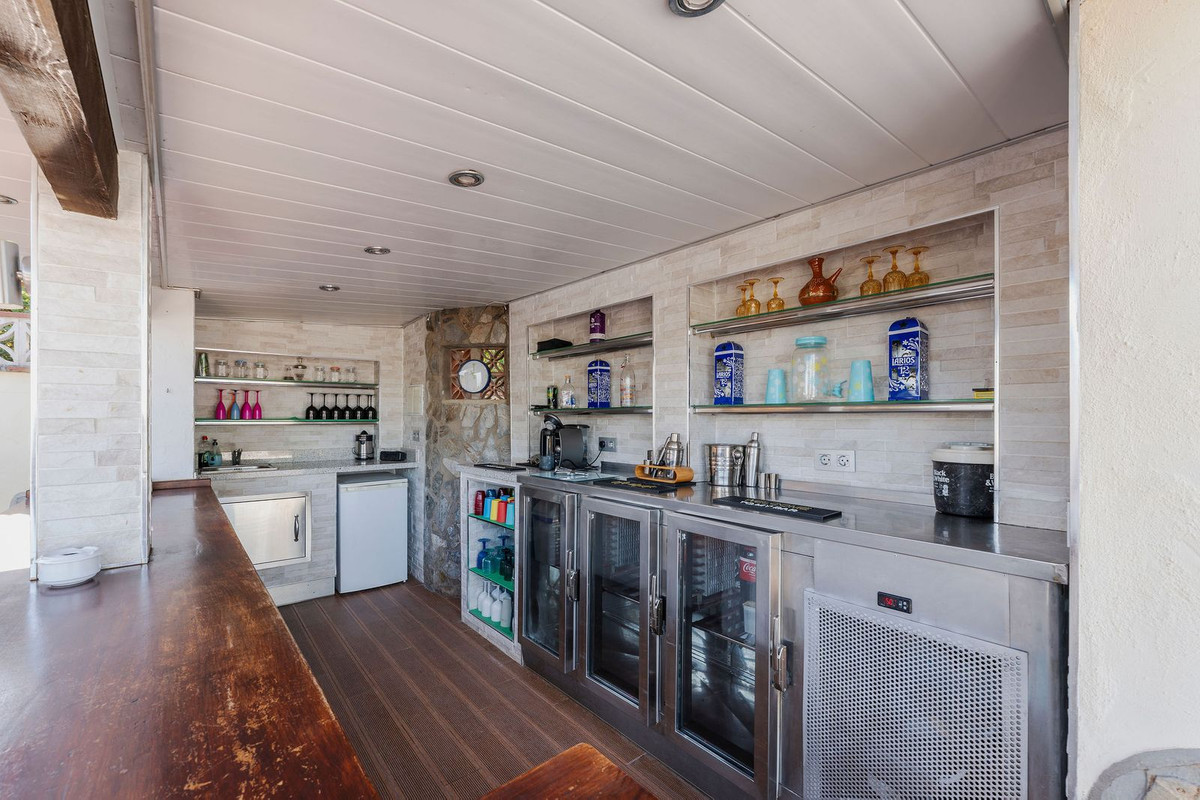 La maison dispose de plusieurs espaces extérieurs pour les repas et la détente. Au bord de la piscine, vous trouverez un bar et un grand coin salon pour les belles journées d'été. Le jardin supérieur bénéficie d'un grand espace repas extérieur avec barbecue et cuisine d'été.
