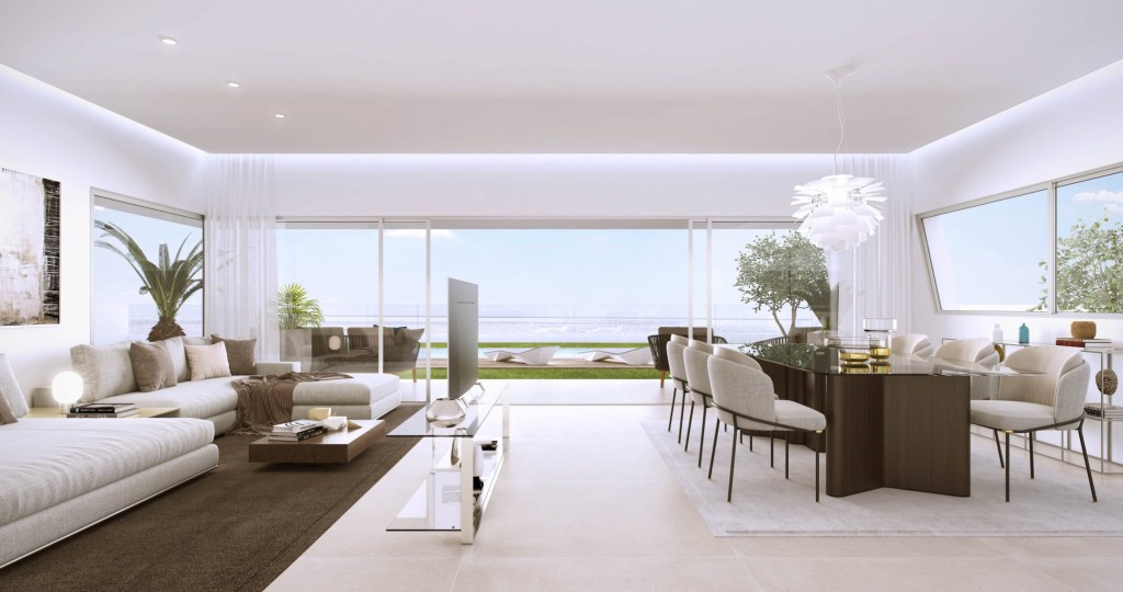 These luxury properties offer well-distributed interior spaces where living area, dining area and fully fitted kitchen with breakfast bar blend into a living space that maximizes views from triple aspect floor to ceiling doors and windows. Connection between outside and inside space is seamless with generous covered and uncovered terraces - the perfect place to relax and enjoy the views overlooking the golf course and south-western coastline onto the Mediterranean Sea.