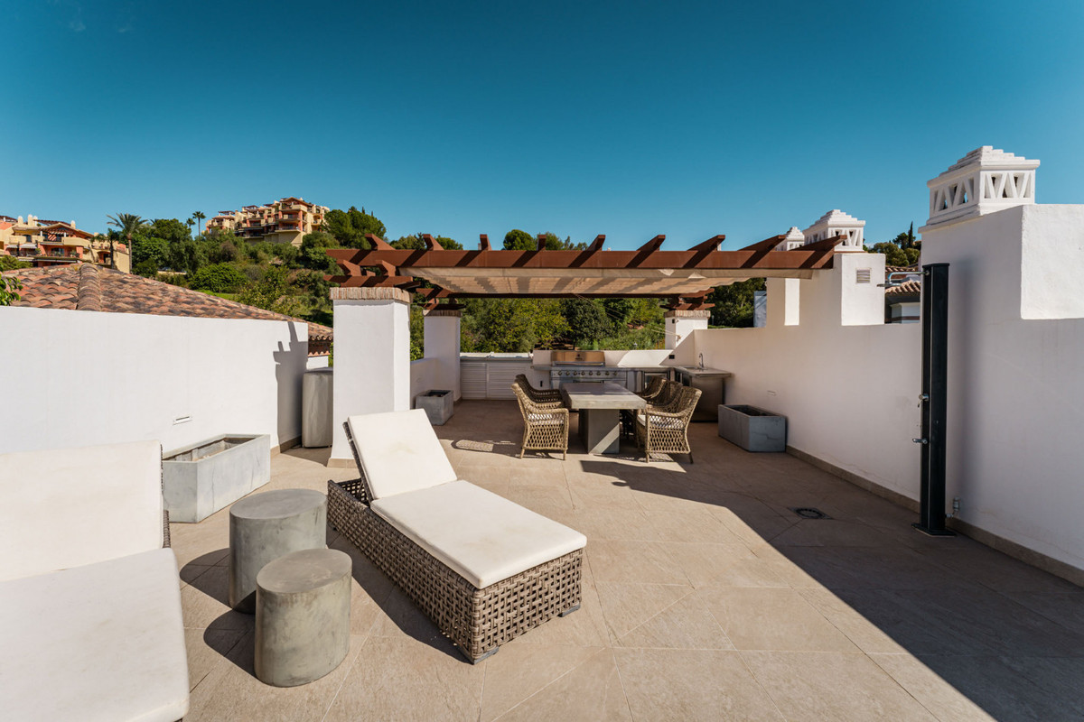 Attention to detail is evident throughout the penthouse. Features such as electric blinds, security shutters, and double glazing ensure both comfort and peace of mind. The inclusion of an outdoor barbecue and thoughtfully planned terraces makes entertaining effortless, while the secure, gated environment of Urb El Lago adds a further layer of reassurance for residents.