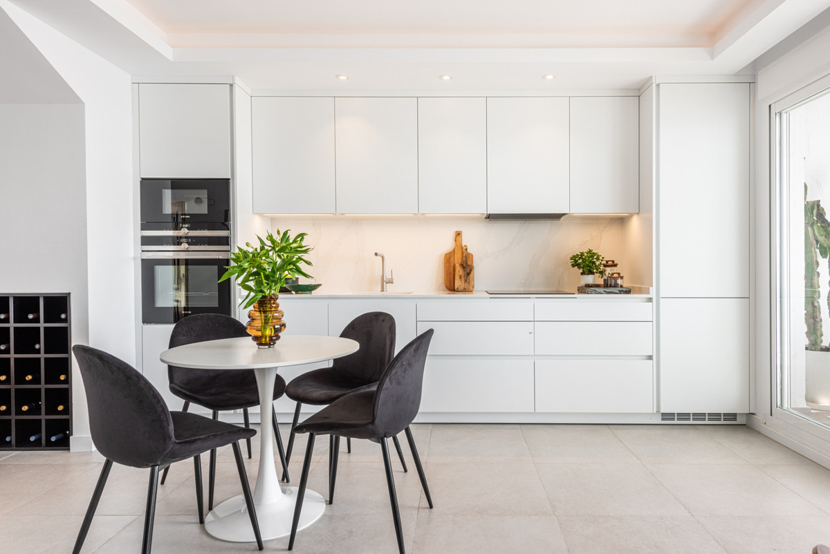Located in the sought-after urbanization of El Dorado in Nueva Andalucia, this Duplex Penthouse is a symbol of luxury and convenience. Designed with modern Scandinavian elegance, the property spans two floors, featuring three bedrooms and three bathrooms. The ground level has a bright, open-plan kitchen with premium appliances, seamlessly merging into a living area that opens to a south-facing terrace. This space is complemented by a dining table, a bar table, and a BBQ area, overlooking the spacious community pool.