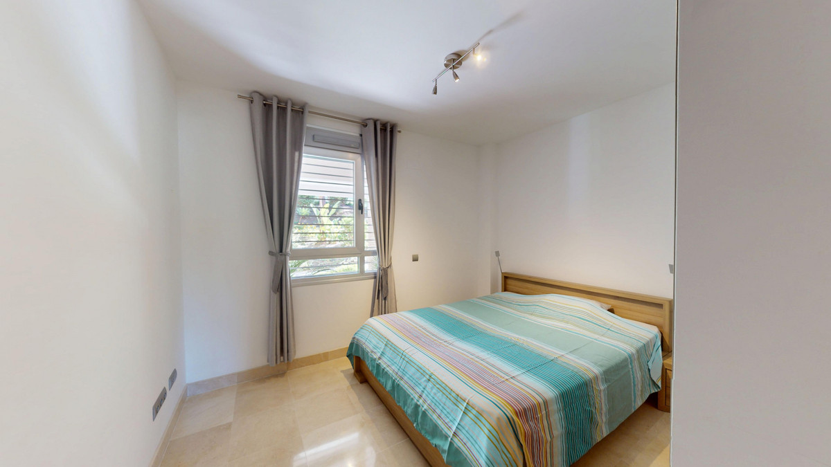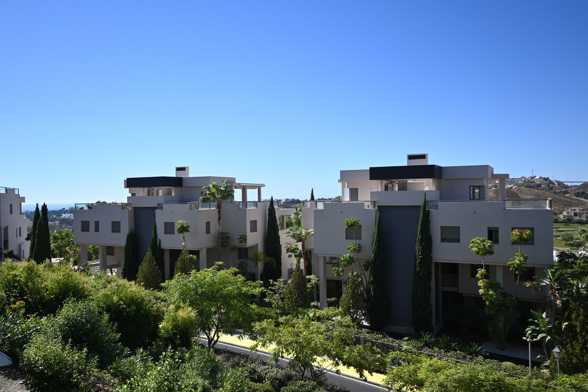 Elegant 2-bedroom, 2-bathroom apartment (one of them en-suite) for sale, located on an elevated ground floor within a gated residential complex with communal pool and gardens, in the prestigious area of Los Arqueros, Benahavís.