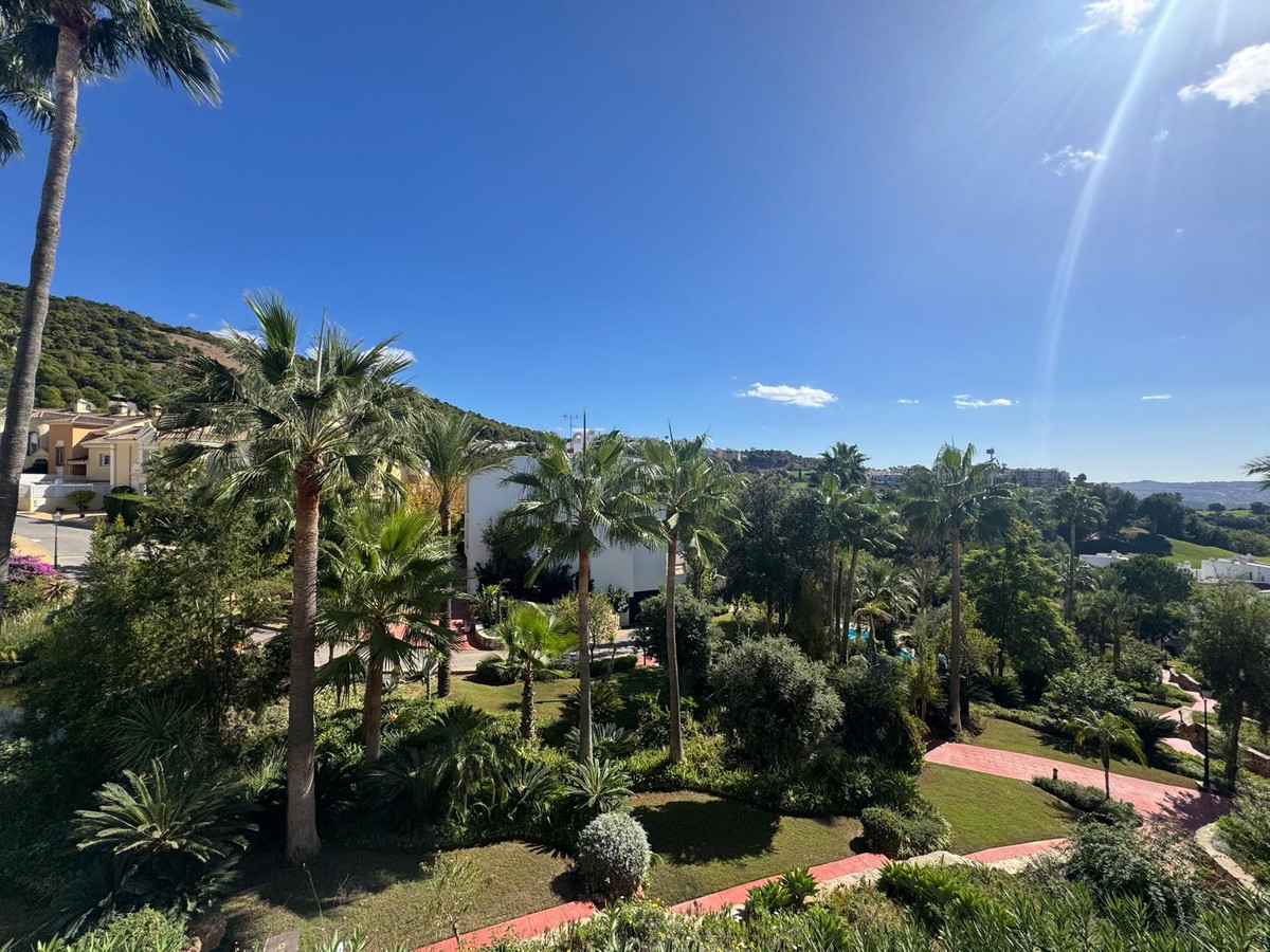 Ce superbe appartement au premier étage offre une vue imprenable sur un jardin tropical luxuriant, le golf d'Alhaurín et les collines environnantes. Accessible par escalier et ascenseur, il s'ouvre sur un hall d'entrée spacieux qui annonce un agencement confortable et bien pensé.
