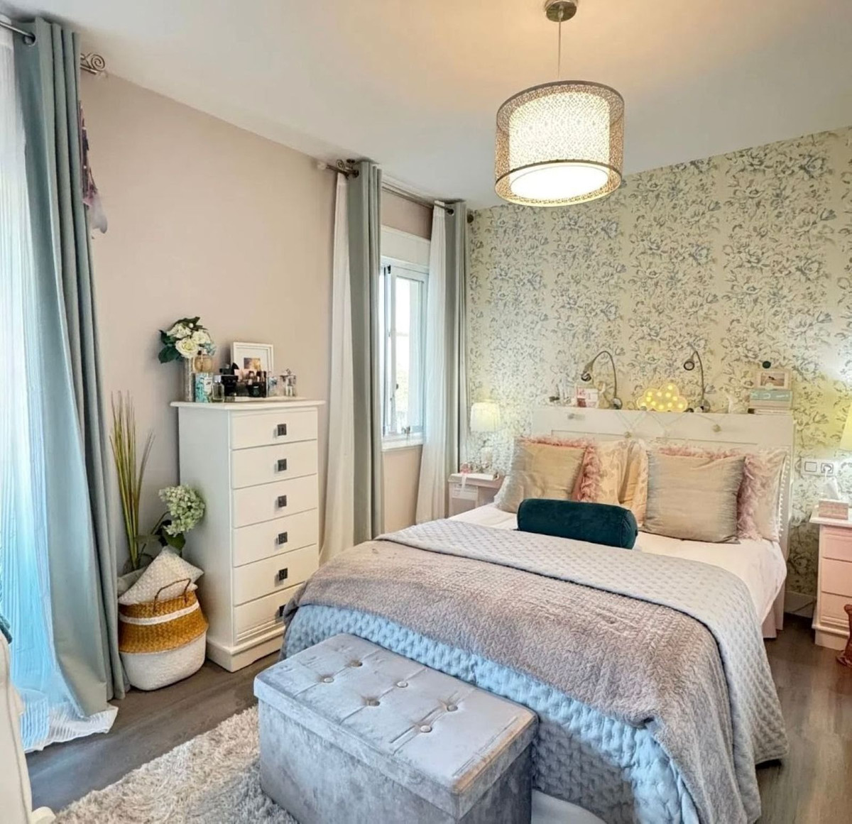 La chambre principale dispose d'un dressing sur mesure, tandis que la salle de bains, à la fois élégante et fonctionnelle, est revêtue de carrelage en porcelaine haut de gamme. La cuisine est équipée d'un plan de travail en marbre Silestone, idéal pour ceux qui apprécient à la fois le style et la praticité.