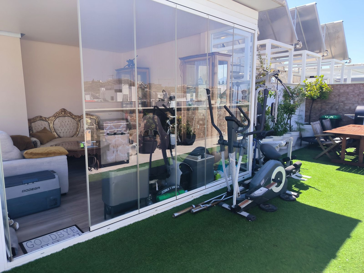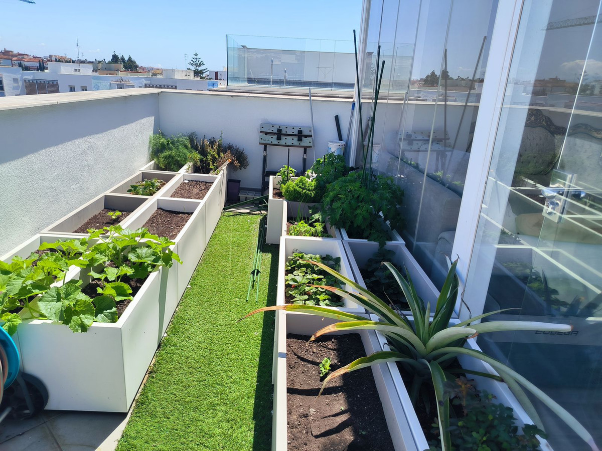 Mais le véritable atout de cette maison se trouve à l'étage : un impressionnant solarium privé de 63 m² sur le toit, offrant une vue panoramique imprenable sur toute la ville et s'étendant jusqu'à la majestueuse Sierra Bermeja. Cet espace extérieur invite à la vie au grand air : partager des repas sous les étoiles, se détendre autour du barbecue ou même cultiver son propre jardin urbain. Une pièce vitrée sur le toit est également disponible, idéale comme coin lecture, bureau ou espace de détente.