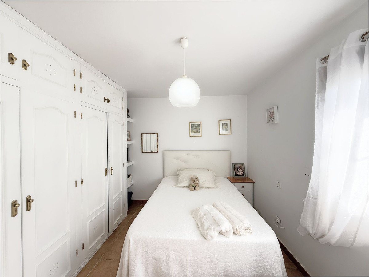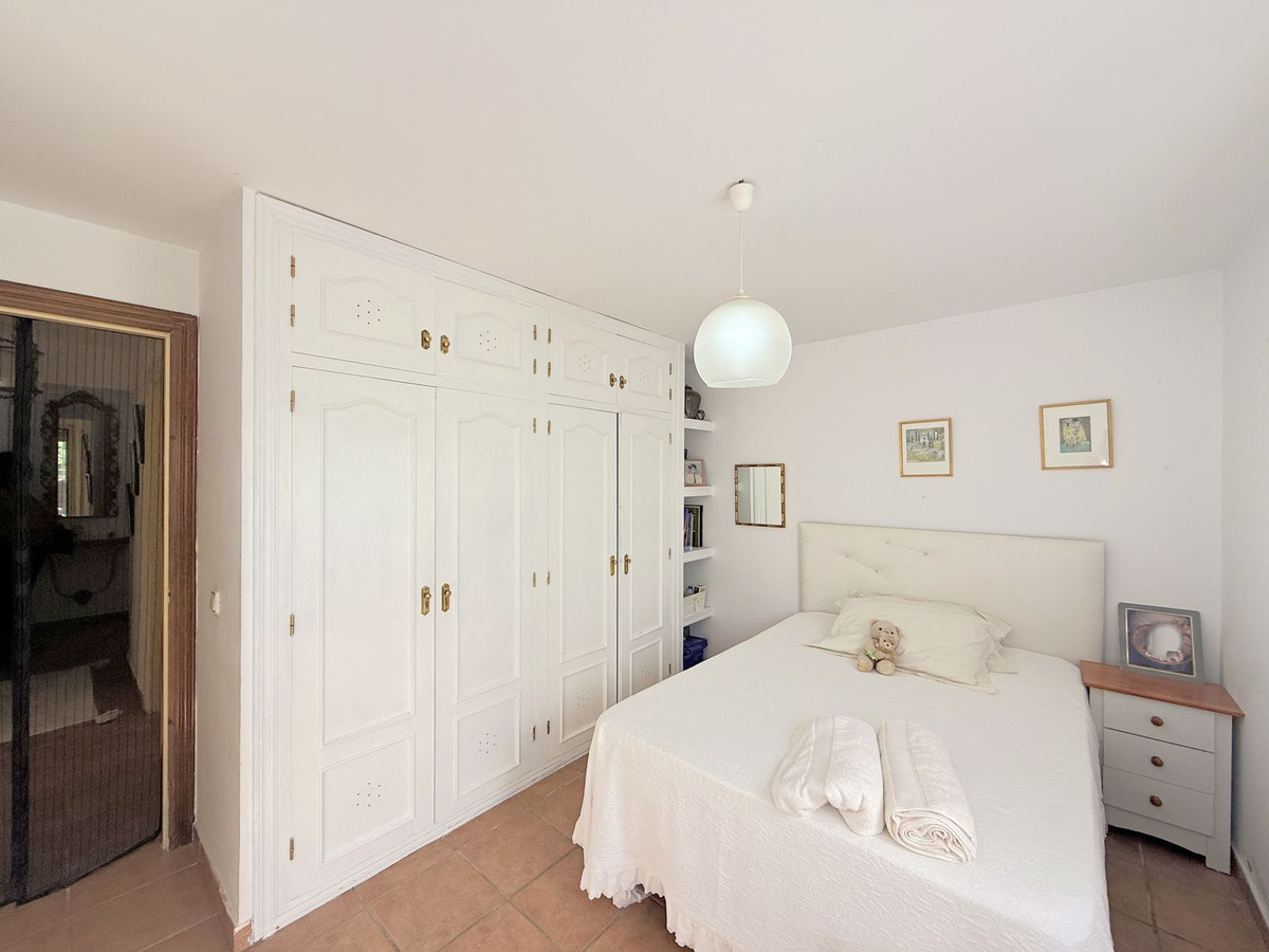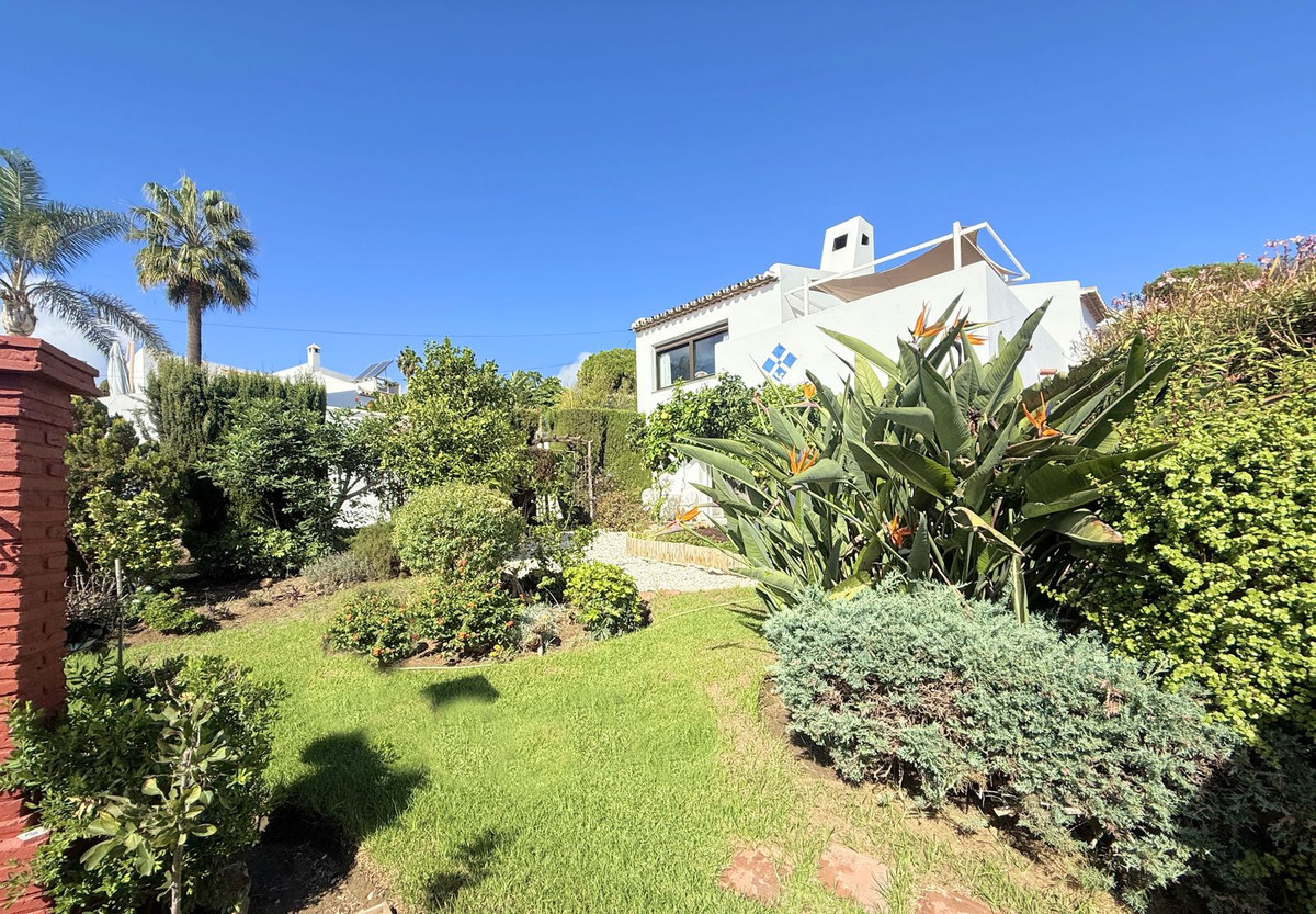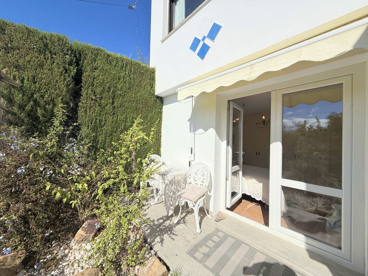 Au niveau inférieur se trouvent deux chambres spacieuses et une salle de bains complète. De là, vous accédez à un charmant jardin privé d'environ 90 m², agrémenté d'arbres matures et d'une végétation soignée qui offrent ombre, fraîcheur et une merveilleuse sensation d'intimité et de tranquillité.