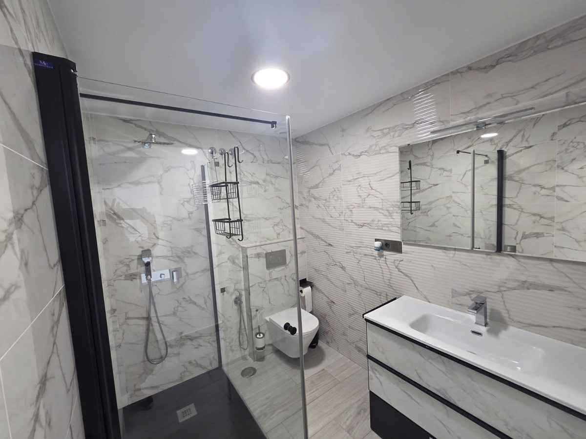 Matériaux haut de gamme : sols en porcelaine imitation bois, portes blanches, fenêtres à double vitrage Climalit assurant une isolation thermique et acoustique, et barreaux de sécurité pour une protection renforcée. Installations électriques et de plomberie entièrement refaites.