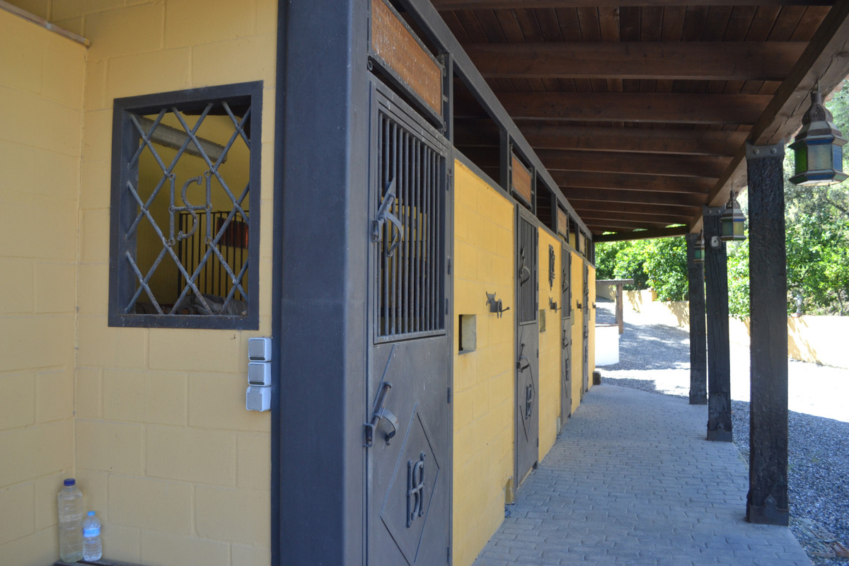 Cette villa de 120 m² offre de plain-pied un vaste séjour/salle à manger avec hauts plafonds et cheminée, une cuisine entièrement équipée avec buanderie, quatre chambres et deux salles de bains. À l'extérieur, vous trouverez une terrasse couverte donnant sur la piscine, un grand espace bar/cuisine/barbecue extérieur et une salle de bains. Face à la piscine se trouvent quatre boxes pour chevaux et une sellerie de 28 m². La propriété comprend également une maison d'amis de 40 m² avec cuisine, chambre et salle de bains, un débarras de 70 m² (pouvant être transformé en seconde maison d'amis) et une construction de 65 m² en cours de construction (fondations réalisées). Trois puits privés, un van à chevaux et des sentiers équestres ou de randonnée offrent une vue panoramique imprenable sur la vallée. Le domaine garantit une intimité totale et bénéficie d'un accès goudronné sur deux côtés. Une concession agricole est possible. Il faut compter 5 minutes en voiture pour rejoindre le centre de Coín et de Guaro, et en 30 minutes de route, vous êtes à Marbella, Malaga, à l'aéroport et à la plage.