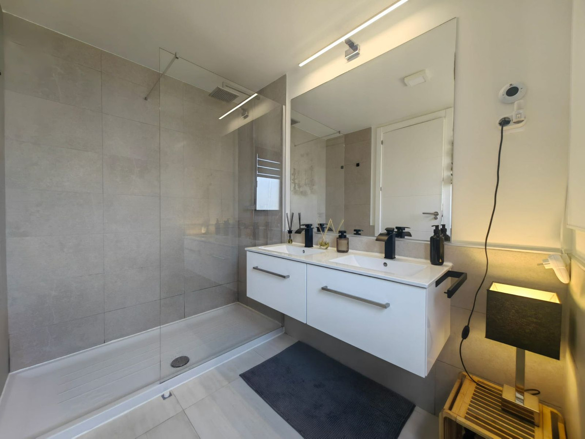 L'aménagement comprend deux chambres confortables et deux salles de bain complètes, toutes deux idéalement situées pour les résidents et les invités. De généreux placards intégrés et espaces de rangement assurent la praticité de l'appartement sans compromettre son design épuré et contemporain.