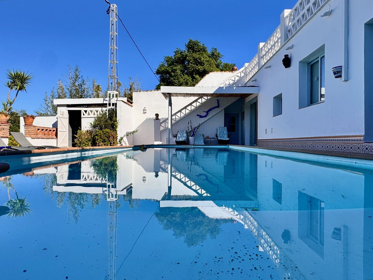 Cette maison de plain-pied a su préserver son charme andalou authentique, avec ses poutres apparentes, ses cheminées et ses recoins chaleureux, tant à l'intérieur qu'à l'extérieur. Elle comprend 5 chambres (dont une avec accès indépendant par la piscine), 4 salles de bains, un vaste séjour avec vue sur la piscine et une suite parentale avec salle de bains privative et dressing.