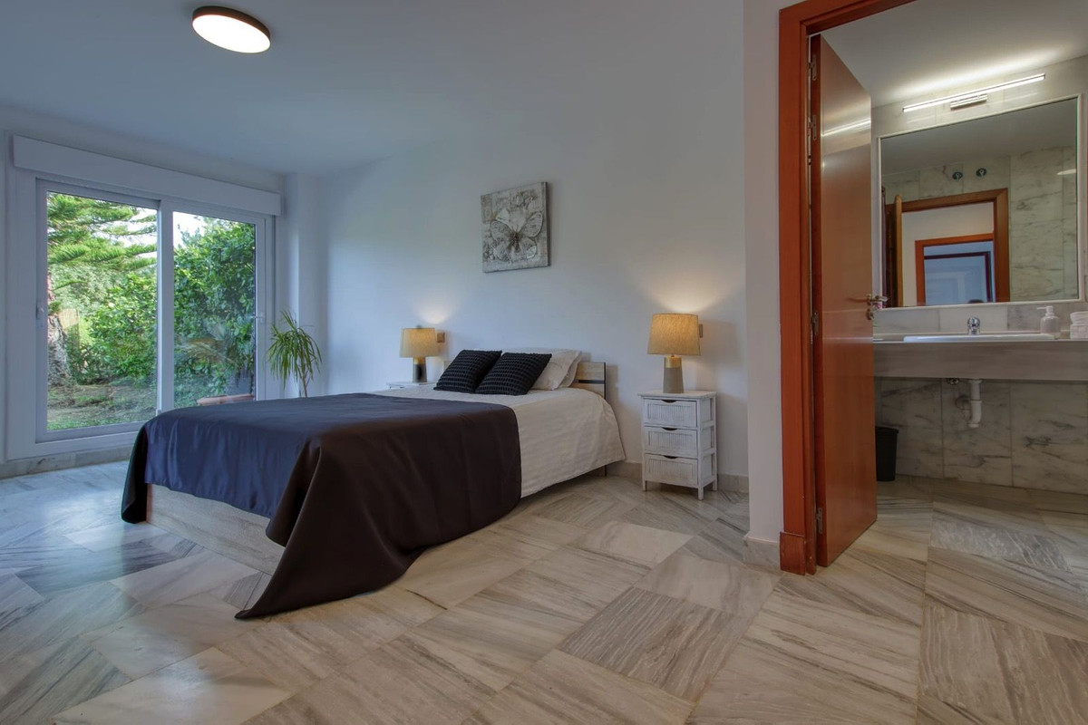 Vivez une expérience unique, alliant intimité et panoramas à couper le souffle, dans la villa la mieux située du Parque Botánico, un luxueux complexe résidentiel sécurisé niché entre les quartiers huppés d'Estepona et de Benahavís, sur la Costa del Sol ensoleillée. Perchée sur un emplacement privilégié sans voisins directs, cette villa indépendante bénéficie d'une luminosité naturelle abondante tout au long de la journée, offrant une tranquillité absolue et des vues panoramiques sur des forêts luxuriantes, des montagnes majestueuses et la Méditerranée scintillante. Entourée par les vastes jardins botaniques du complexe, des cascades et des sentiers de promenade paisibles longeant le fleuve Guadalmansa – où l'on peut encore admirer les vestiges d'une ancienne mine romaine –, cette oasis de paix se trouve à seulement 100 mètres de sentiers de randonnée, à 5 minutes de plages immaculées comme Playa del Saladillo, à 10 minutes de la vieille ville fleurie et du port de plaisance d'Estepona, et à 15 minutes de l'animation de Puerto Banús. La proximité de l'Atlas American School et de l'hôpital Hospiten Estepona en fait un lieu idéal pour les familles, tandis que l'accès facile à l'A-7 vous relie au golf de classe mondiale de Los Flamingos et à la scène animée de Marbella.