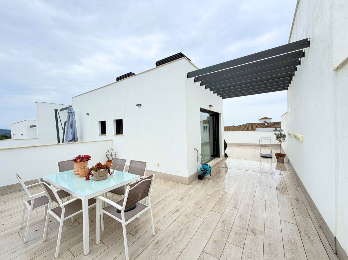 Maison de ville contemporaine située dans le prestigieux San Roque Club sur la Costa del Sol. Cette propriété allie design moderne, finitions haut de gamme et cadre naturel privilégié, ce qui en fait un choix idéal comme résidence principale ou investissement. La maison se distingue par ses volumes généreux, sa luminosité naturelle et son agencement fonctionnel. Le séjour ouvert, équipé de stores électriques et de grandes baies vitrées, donne sur une terrasse privative offrant une vue imprenable sur le golf, la mer et les jardins communs. La cuisine moderne et entièrement équipée apporte élégance et praticité à l'espace. La maison dispose de 3 chambres avec possibilité d'en aménager une quatrième, toutes dotées de placards intégrés et de finitions de haute qualité. La suite parentale comprend une salle de bains privative et un accès à une terrasse privée. Ce niveau comprend également un grand solarium offrant une vue imprenable sur le golf, la mer, les montagnes et le paysage naturel environnant. La maison est équipée d'un système aérothermique de pointe, garantissant une efficacité énergétique et un confort optimaux toute l'année. Cette maison de ville fait partie d'une résidence sécurisée 24h/24 avec jardins magnifiquement entretenus et piscine commune. Le San Roque Club offre tranquillité, intimité et exclusivité, à proximité de Sotogrande, des plages, des écoles internationales et de nombreux services. Une visite est vivement recommandée à ceux qui recherchent une qualité de vie exceptionnelle, un design soigné et un cadre de vie résidentiel raffiné dans l'un des quartiers les plus prisés du sud de l'Espagne.
