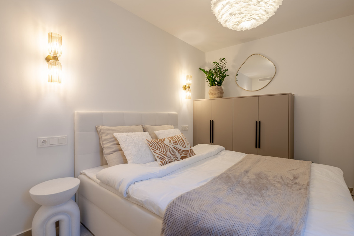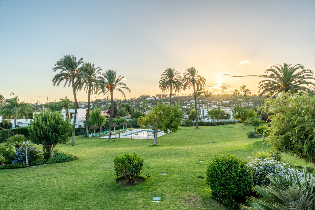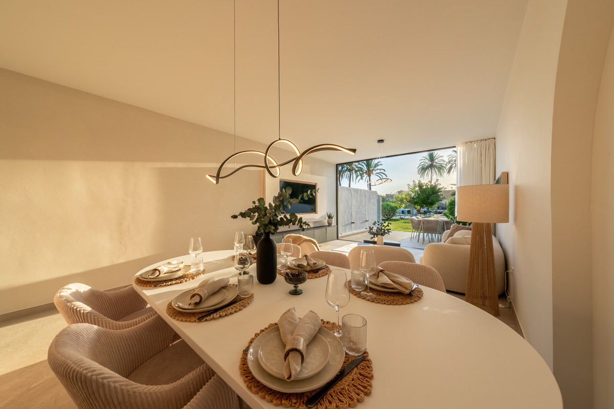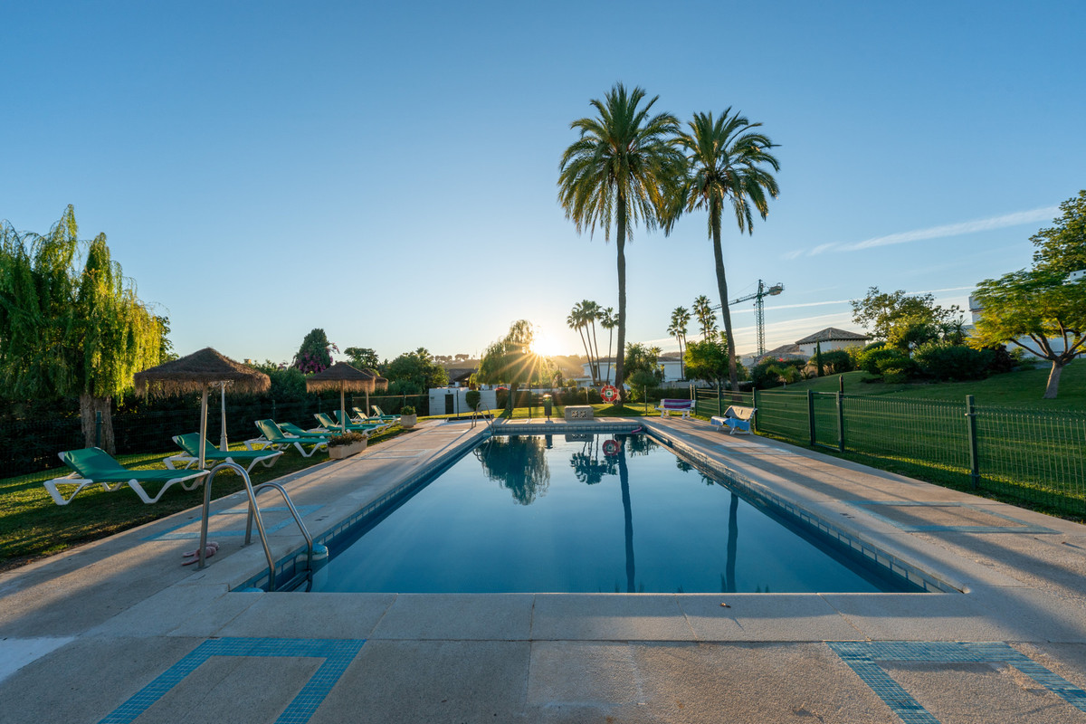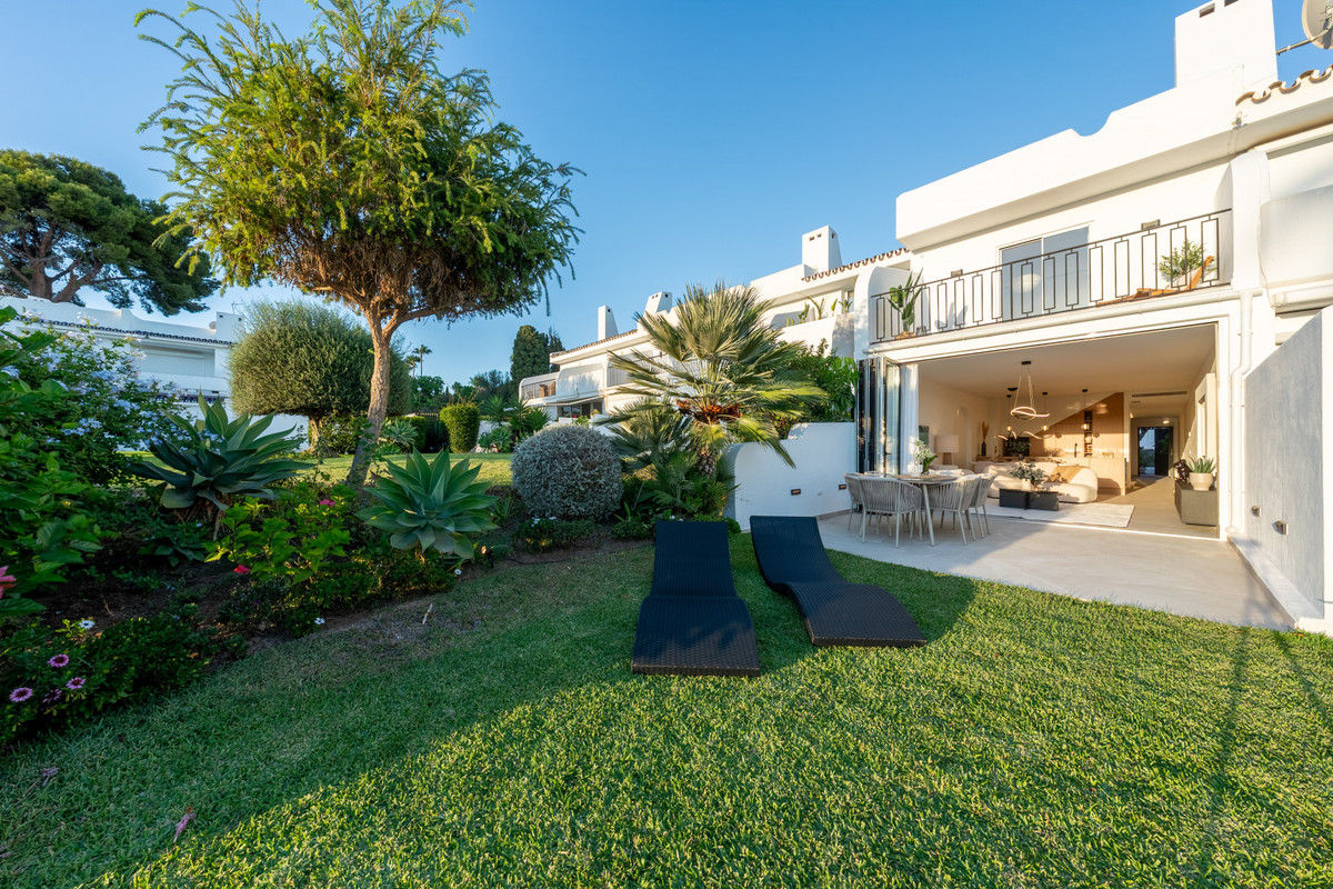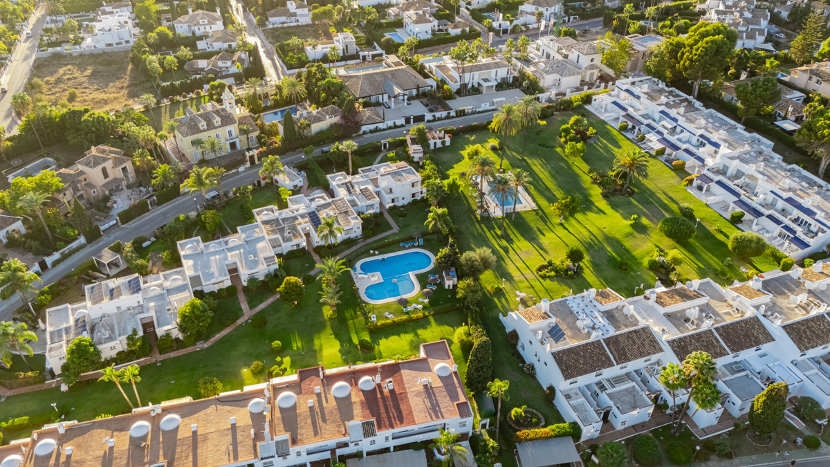 Nichée au cœur de jardins tropicaux luxuriants et agrémentée d'une magnifique piscine commune, cette maison offre un parfait mélange de tranquillité et de commodités, à quelques minutes de terrains de golf de renommée mondiale, de boutiques chics et de la vie animée de Puerto Banús.