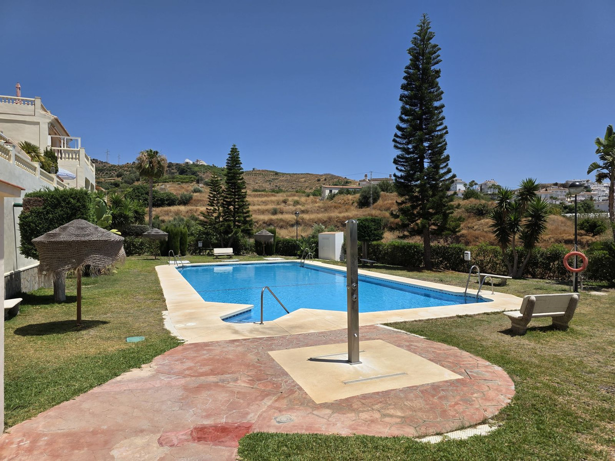 Superbe emplacement pour cette maison de ville à Torrox Costa, à proximité de la plage et de toutes les commodités. Une école publique se trouve également à quelques minutes. La maison dispose d'un patio à l'entrée, d'une grande terrasse à l'arrière et d'une vaste terrasse sur le toit offrant une vue imprenable sur la mer et la côte. Elle comprend deux chambres, une salle de bain complète, une cuisine ouverte entièrement équipée, un coin repas et un grand séjour donnant accès à la terrasse privative et au jardin commun. Orientée sud-ouest, elle bénéficie d'une vue magnifique sur la côte. Cette maison fait partie de la résidence Torrox Park, qui propose des jardins et une grande piscine. À environ 30 minutes de l'aéroport et du centre-ville de Malaga et à seulement 10 minutes du célèbre village de Nerja. La surface habitable se répartit comme suit : 70 m² habitables, 16 m² de terrasse, 55 m² de terrasse sur le toit et 4 m² d'escalier.