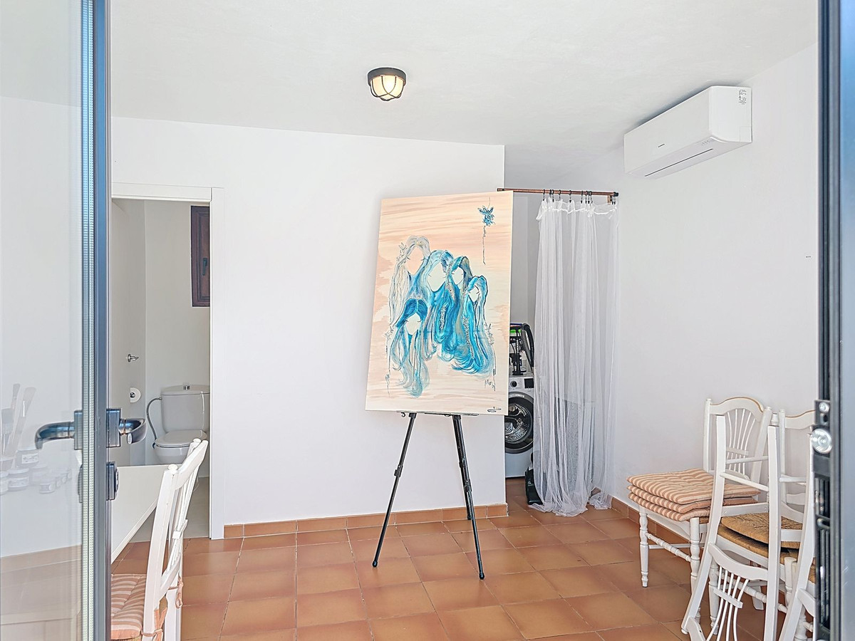 La maison principale comprend trois chambres lumineuses et une salle de bains moderne récemment rénovée. L'espace de vie ouvert communique harmonieusement avec une cuisine entièrement équipée et de vastes terrasses, créant ainsi une transition fluide entre l'intérieur et l'extérieur. Parmi les améliorations récentes, on note l'installation de nouveaux climatiseurs et de robinetterie Grohe haut de gamme dans la salle de bains.
