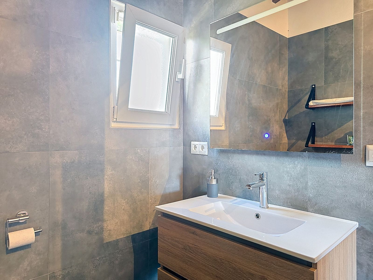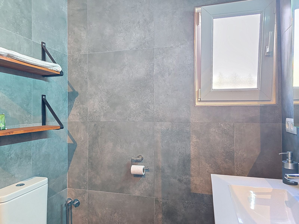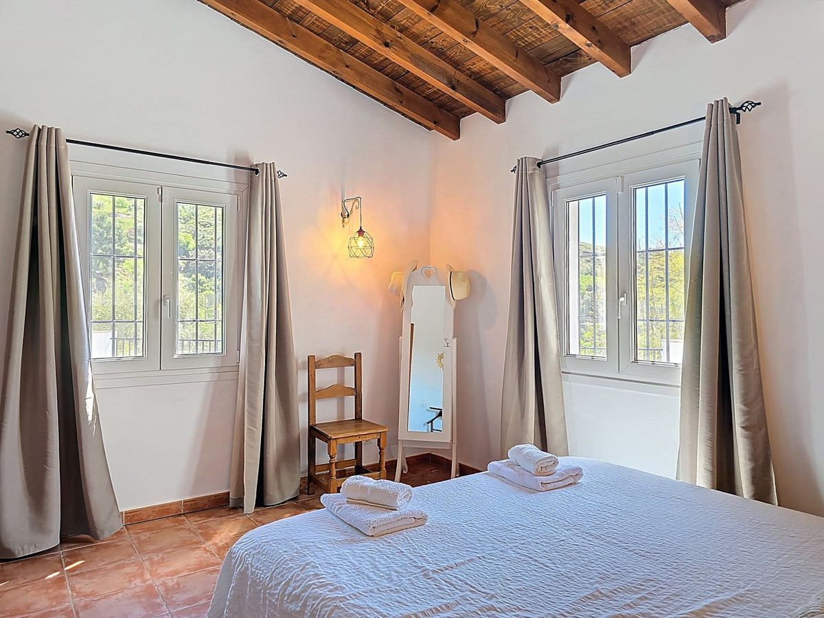La propriété comprend trois chambres doubles spacieuses, chacune dotée de rangements intégrés et offrant une vue sur la campagne environnante. L'une des chambres bénéficie d'une salle de bains privative, pour plus d'intimité et de confort. Une seconde salle de bains familiale, ornée de carreaux andalous traditionnels et d'équipements modernes, offre un espace lumineux et fonctionnel, aussi bien pour les résidents que pour leurs invités.