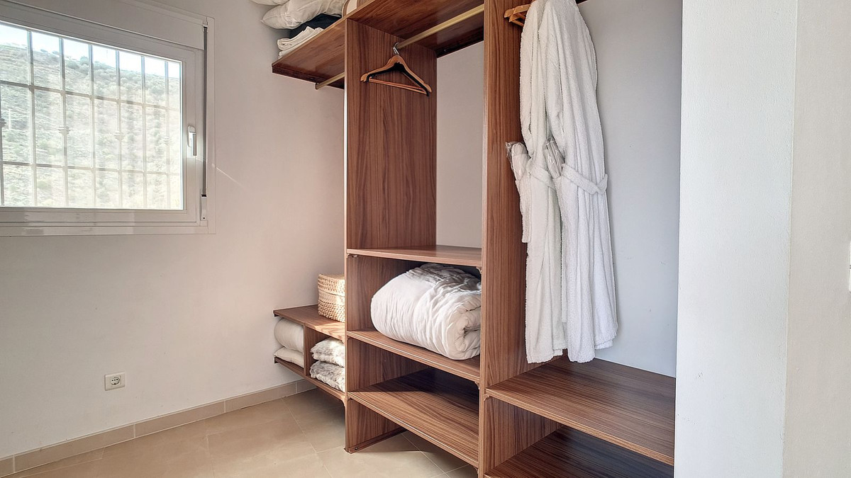 La villa comprend un séjour (coin salon et salle à manger) avec cuisine ouverte. Au rez-de-chaussée, elle offre deux chambres spacieuses, chacune avec sa propre salle de bains, ainsi qu'un cellier équipé d'un lave-linge et d'un espace de rangement pour le linge de maison. Un bel escalier dans le séjour mène au premier étage qui abrite une suite parentale spacieuse avec coin salon et espace détente, salle de bains privative avec baignoire/douche et dressing. La terrasse offre une vue imprenable sur les montagnes environnantes et la mer.