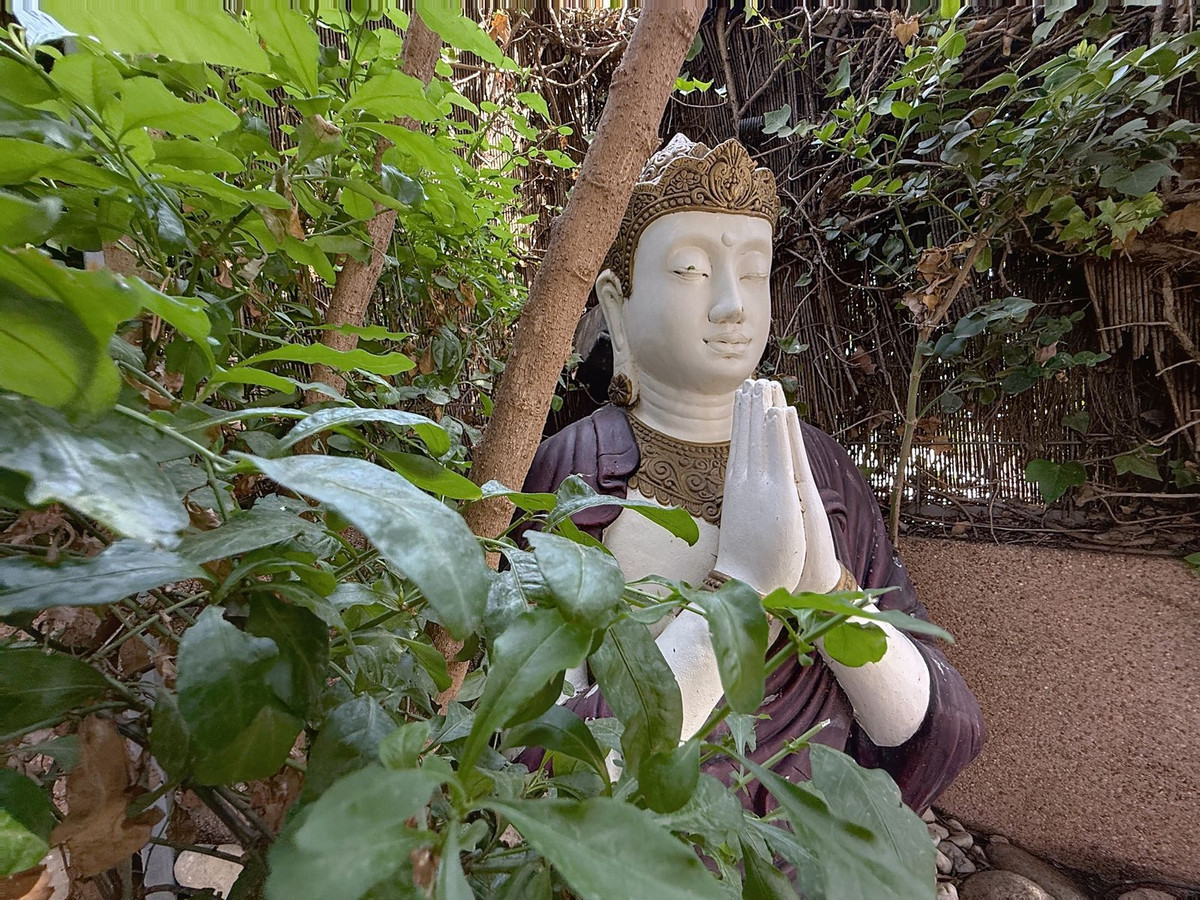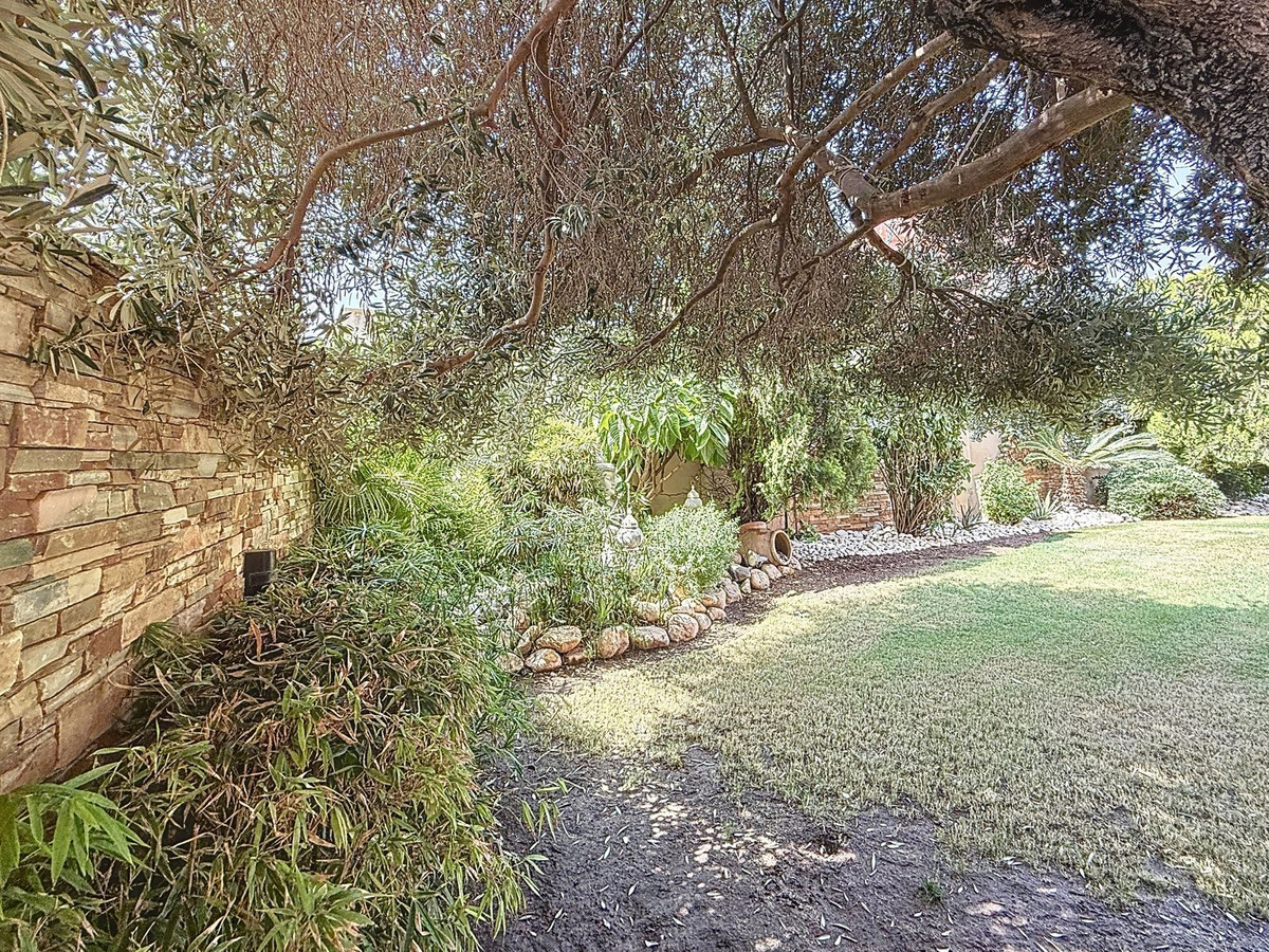 Dès que vous franchissez le portail privé, une sérénité absolue vous enveloppe. Les jardins forment un univers à part : un olivier centenaire veille sur la propriété, des statues de Bouddha invitent à la quiétude, des terrasses ombragées et des coins lounge intimes invitent à la détente. Au cœur de ce havre de paix se trouve une piscine de 6 x 4 m avec jacuzzi, nichée au cœur d'une végétation luxuriante et à l'ombre bienfaisante d'arbres matures – une oasis rare dans ce lieu privilégié.