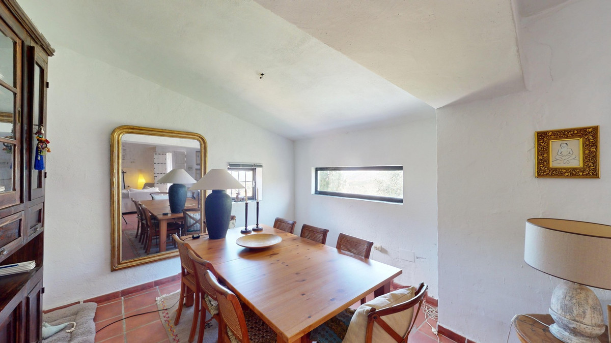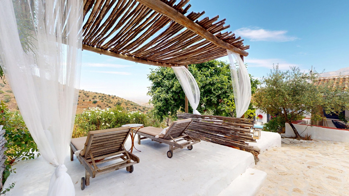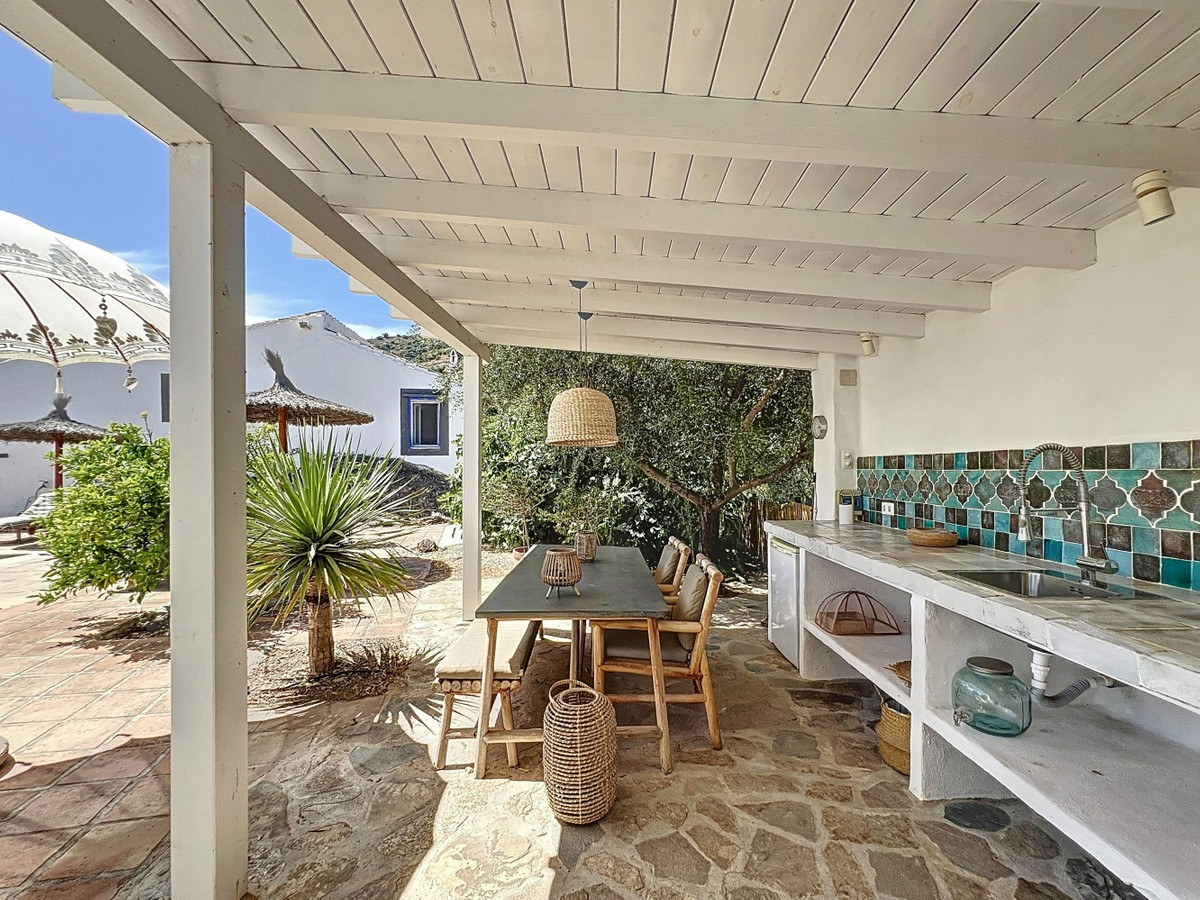Niché dans les collines d'Arenas, à Malaga, ce charmant cortijo est bien plus qu'une simple maison : c'est un havre de paix méditerranéen empreint de caractère et de sérénité. Divisé en trois appartements indépendants, il se prête parfaitement à une charmante maison d'hôtes ou à une spacieuse résidence familiale, offrant flexibilité, confort et authenticité. L'appartement principal comprend deux chambres et deux salles de bains élégantes, chacune dotée d'une douche à l'italienne et de détails soignés tels que des vasques en marbre et des carreaux à motifs. L'espace de vie ouvert est chaleureux, avec son sol en terre cuite, son canapé d'angle gris clair, ses touches de rotin et son lustre en cristal étincelant. La cuisine est à la fois belle et fonctionnelle, avec ses meubles blancs, ses carreaux colorés et ses appareils électroménagers modernes, dont un lave-vaisselle et un four. Le deuxième appartement est un refuge intime et lumineux d'une chambre. Bien que compact, il offre tout le nécessaire : une kitchenette, une salle de bains chic avec une douche carrelée à motifs de feuilles tropicales et des touches élégantes comme des lustres et des miroirs décoratifs. Le rotin, la terre cuite et les détails tressés apportent chaleur et texture à chaque recoin. Le troisième appartement offre un agencement bien pensé avec une chambre, une salle de bains, un bureau, une cuisine et un séjour. Les murs blanchis à la chaux, la cheminée et les grandes fenêtres lui confèrent une atmosphère lumineuse et aérée, tandis que les placards de cuisine rouges et le mobilier rustique y ajoutent une touche de personnalité. Chaque pièce est ornée d'éléments artistiques, d'un éclairage unique et d'une décoration artisanale. Mais c'est l'espace extérieur qui confère à cette propriété toute sa magie. Le cortijo est entouré de vues imprenables sur les montagnes, et le jardin regorge de charme : sols en pierre naturelle, terrasses ombragées, coins salon intimes, une méridienne pour des après-midi de détente et une piscine aux eaux turquoise scintillantes. La cuisine d'été couverte est un véritable atout, avec ses carreaux faits main et son plan de travail artisanal qui témoignent du soin et de l'amour apportés à chaque détail de cette maison. Chaque recoin de ce cortijo est plein de caractère, des tentures murales artistiques aux luminaires artisanaux, en passant par la sensation de calme qui vous enveloppe dès votre arrivée. Que vous recherchiez une retraite paisible ou que vous souhaitiez accueillir des hôtes dans un Bed & Breakfast d'exception, ce joyau andalou est l'escapade idéale. Nous sommes ravis de pouvoir vous présenter prochainement cette propriété de rêve, en personne ou par visite virtuelle. Car ce monde est unique, à l'image de notre Axarquía. En Andalousie. Sur la Costa del Sol. Ici, sous le soleil…