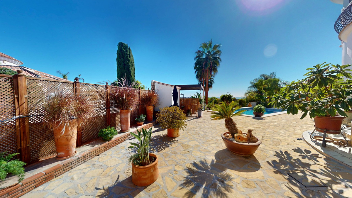 Découvrez un monde où luxe et tranquillité se conjuguent dans cette magnifique villa individuelle, située dans le quartier résidentiel paisible d'El Capitán, près de Torre del Mar et d'Almayate, sur la côte est de Malaga. Son emplacement est idéal pour ceux qui recherchent calme et intimité tout en restant proches des commodités. En quelques minutes seulement, vous rejoindrez les plages d'Almayate et de Torre del Mar, où vous trouverez de charmants restaurants, des boutiques et des promenades animées en bord de mer. La ville de Malaga et l'aéroport sont à seulement 35 minutes en voiture. Nichée sur un terrain privé de 811 m², la villa offre 310 m² d'espace de vie élégant, entouré d'un jardin facile d'entretien, clos d'un mur pour une intimité et une sécurité optimales. Un portail privé permet l'accès aux véhicules, et l'espace extérieur comprend une piscine étincelante, une vaste terrasse couverte pour se détendre à l'ombre, et un charmant coin salon sous une coupole, parfait pour savourer un verre ou un bon livre. À l'intérieur, la maison impressionne par ses espaces généreux et sa luminosité naturelle. Le hall d'entrée mène à un garage double avec espace de rangement supplémentaire. Au rez-de-chaussée, vous trouverez un vaste séjour avec un coin salon attenant et de larges baies vitrées s'ouvrant sur la piscine et le jardin, ainsi qu'une salle de bains et une chambre idéale pour les invités. À l'étage, le cœur de la maison se dévoile : un espace lumineux et décloisonné réunissant la cuisine, la salle à manger et le séjour. La lumière naturelle inonde la pièce à travers de grandes fenêtres, créant une atmosphère chaleureuse et accueillante, propice à la détente en famille comme aux réceptions élégantes. La cuisine entièrement équipée dispose d'élégants placards en bois, d'un plan de travail en granit et offre une vue sur le jardin. Depuis le séjour, vous accédez à un grand balcon offrant une vue imprenable sur la mer Méditerranée. Cet étage comprend également deux chambres, une salle de bains spacieuse et des toilettes séparées. Une terrasse donnant sur la rue est accessible depuis ce niveau ou par un escalier extérieur, offrant un espace extérieur supplémentaire pour se réunir ou profiter de soirées paisibles. Au dernier étage, une terrasse sur le toit couronne la villa, offrant une vue panoramique sur la mer, les montagnes et la campagne environnante – un lieu idéal pour admirer les couchers de soleil et la sérénité des soirées andalouses. Cette villa allie élégance, confort et charme méditerranéen : un véritable havre de paix où chaque jour est une invitation au voyage. Nous serions ravis de vous présenter prochainement cette propriété de rêve, que ce soit en personne ou par le biais d’une visite virtuelle. Car ce monde est unique, à l’image de notre Axarquía. En Andalousie. Sur la Costa del Sol. Ici, la vie est douce et ensoleillée.