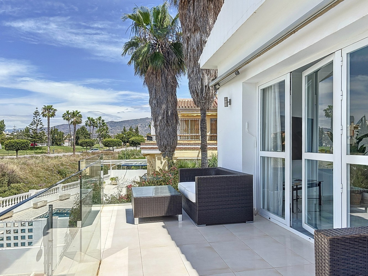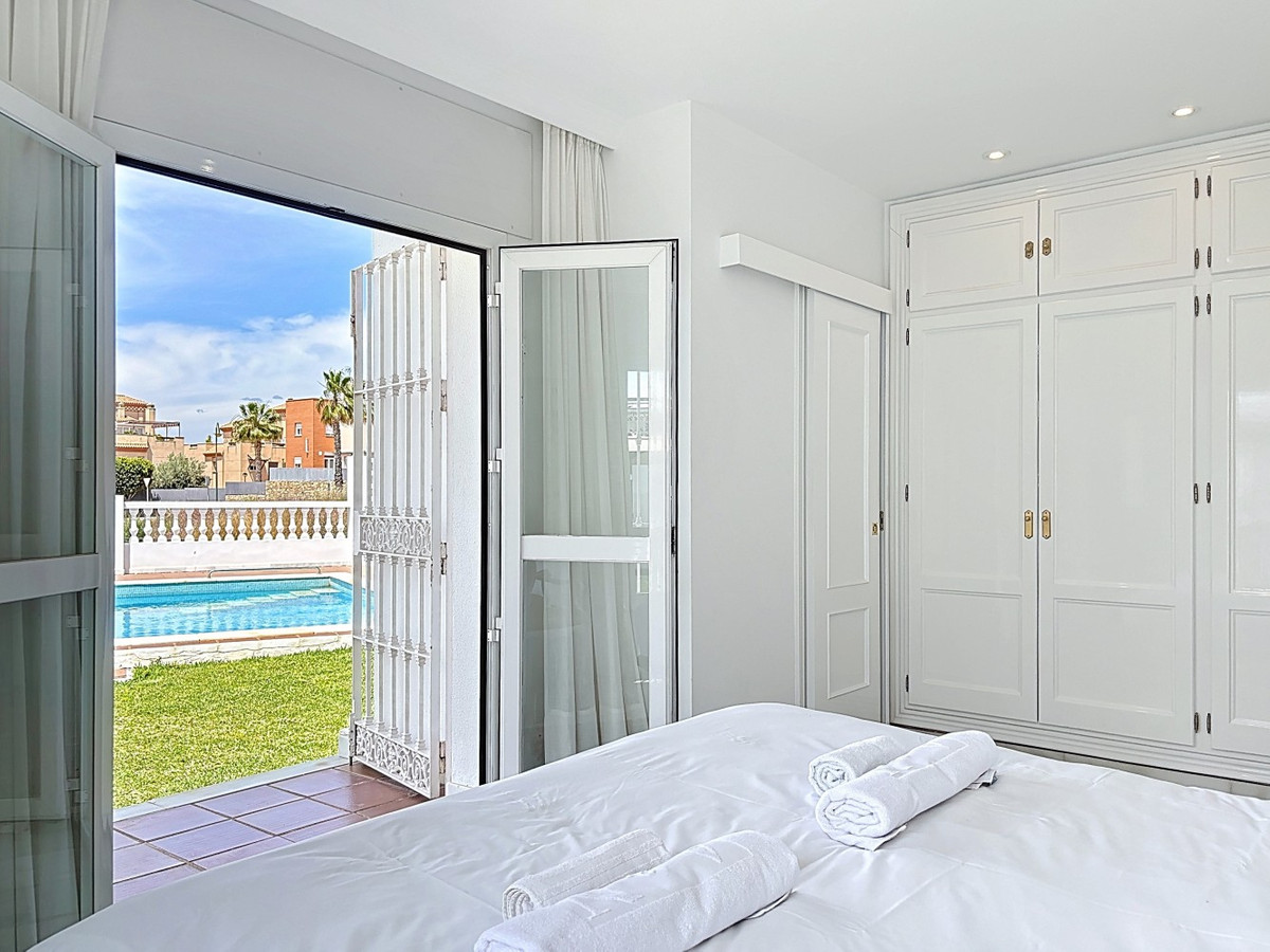 Cette magnifique villa moderne à Caleta de Vélez offre de vastes espaces de vie, une vue imprenable sur la mer et de superbes espaces extérieurs, à quelques minutes seulement de la plage, du port de plaisance et du golf. Au niveau principal (premier étage), vous trouverez une cuisine neuve entièrement équipée avec une buanderie séparée, une salle de bain complète et un espace de vie ouvert exceptionnellement spacieux comprenant salle à manger et salon. Ce dernier s'ouvre sur une terrasse offrant une vue panoramique sur la mer. Grâce à son orientation sud-ouest, cet espace bénéficie d'une luminosité naturelle abondante tout l'après-midi et de couchers de soleil spectaculaires. Le rez-de-chaussée comprend deux chambres d'amis confortables, chacune avec placards intégrés et accès direct au jardin, ainsi qu'une salle de bain complète. La suite parentale, plus spacieuse, dispose également de placards intégrés, d'une salle de bain privative et d'un accès au jardin. Ce dernier abrite une grande piscine d'environ 12 mètres sur 6 et un espace barbecue extérieur, idéal pour recevoir ou se détendre au soleil. Un sous-sol avec salle de bain privative offre un espace modulable pouvant facilement être transformé en salle de sport, bureau, second salon, salle de jeux pour enfants, voire en appartement indépendant. La propriété comprend également un garage privé pour une voiture et deux places de parking supplémentaires. Cette villa allie confort moderne et emplacement privilégié en bord de mer, ce qui en fait une résidence principale idéale, une maison de vacances ou un investissement locatif. Les visites sont fortement recommandées. Nous serons ravis de vous présenter prochainement cette propriété de rêve, en personne ou virtuellement. Car ce monde est unique, à l'image de notre Axarquía. En Andalousie. Sur la Costa del Sol. Ici, sous le soleil…