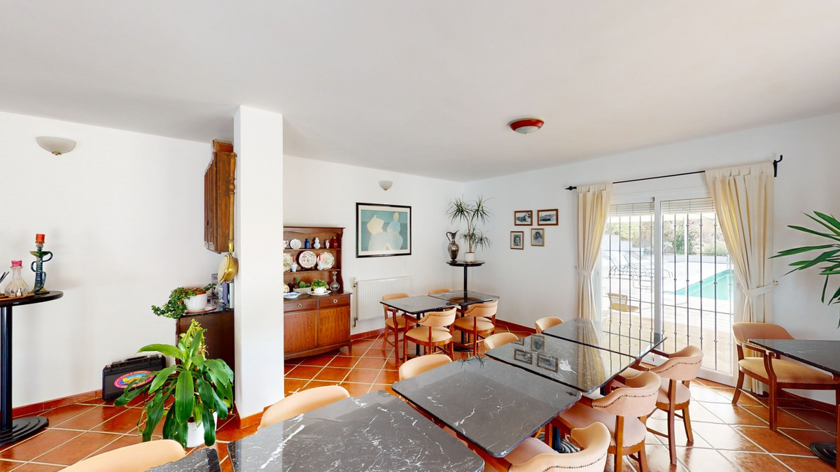 Nous vous présentons ce magnifique hôtel/chambres d'hôtes situé à proximité de la charmante ville de Macharaviaya. La propriété s'étend sur un terrain de 18 313 m². L'hôtel lui-même, d'une superficie de 500 m², est idéal pour concrétiser votre rêve de posséder une chambre d'hôtes ou un hôtel. En entrant dans le bâtiment, vous découvrirez un espace spacieux faisant office de réception, de bar et de salle à manger. Vous y trouverez également des espaces détente et deux toilettes. Attenante à cet espace se trouve la cuisine entièrement équipée avec du matériel professionnel. Au premier étage, deux chambres sont aménagées. L'une d'elles est spécialement conçue pour les personnes à mobilité réduite. L'encadrement de la porte est suffisamment large pour permettre le passage d'un fauteuil roulant et des barres d'appui sont prévues à côté des toilettes et de la baignoire. La seconde chambre peut également servir de chambre supplémentaire, de bureau, de débarras, etc. À côté de ces deux chambres se trouvent des toilettes réservées au personnel. Un escalier extérieur mène aux cinq grandes et superbes chambres. Toutes disposent d'une salle de bain privative, de placards intégrés et certaines possèdent une terrasse. Dans ces chambres, les portes sont larges. Une rampe ou un monte-personne serait nécessaire pour accéder à cet étage en fauteuil roulant. Cette propriété pourrait être entièrement adaptée aux personnes à mobilité réduite. À l'extérieur, une piscine de 12 x 6 mètres est idéale pour se rafraîchir lors des chaudes journées d'été. On y trouve également un jardin, un parking pour plusieurs voitures et une petite chapelle, actuellement utilisée comme espace de rangement. De nombreuses possibilités de réaménagement s'offrent à vous. L'hôtel bénéficie d'une vue panoramique imprenable sur la mer et la campagne environnante. Ne manquez pas cette occasion unique de découvrir cette propriété et laissez-vous inspirer par les possibilités de transformation que vous pourriez en faire selon vos goûts. Nous serons ravis de vous présenter prochainement cette propriété de rêve, en personne ou en visite virtuelle. Car ce monde est unique, à l'image de notre Axarquía. En Andalousie. Sur la Costa del Sol. Ici, sous le soleil…