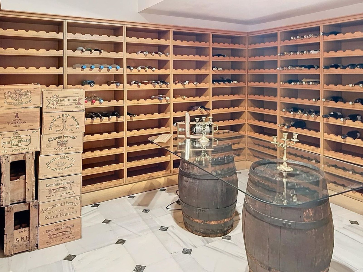 ✨ Un espace de divertissement au sous-sol comprenant une salle de réception, une cave à vin, une chambre et des toilettes