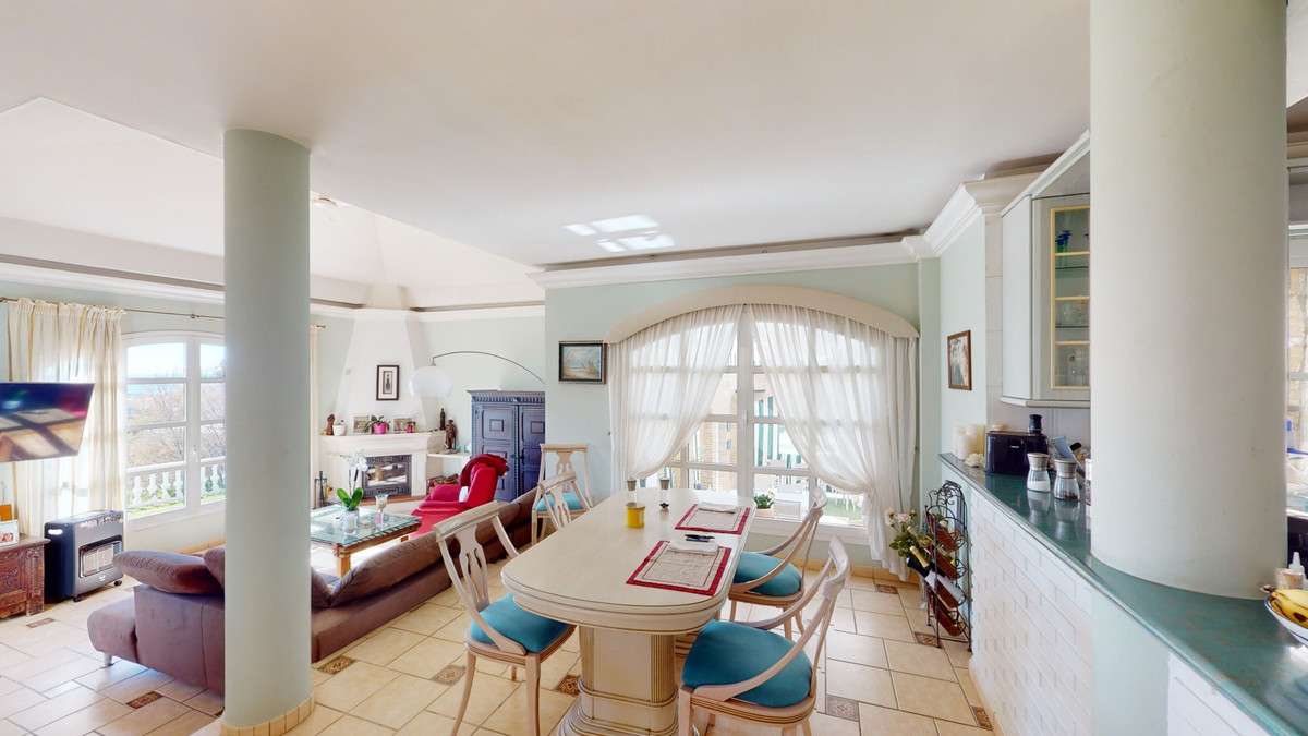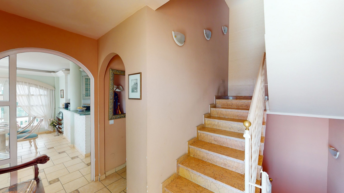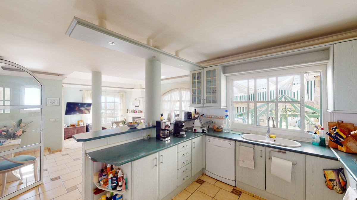 Vous avez toujours rêvé d'une grande et élégante demeure pouvant accueillir toute la famille ? Nous avons la propriété idéale pour vous. Cette villa d'environ 500 m² est divisée en deux maisons jumelées. Chaque logement dispose de sa propre entrée et de cinq niveaux. De plus, chaque partie de la maison comprend une dépendance pour les invités. Parfaite pour une famille nombreuse, un investissement locatif ou un club de tennis, les possibilités sont nombreuses. Un sous-sol spacieux et commun, avec buanderie, rangements et accès à l'extérieur, relie les deux parties de la villa. Des escaliers séparés mènent au rez-de-chaussée. De part et d'autre, on trouve l'entrée principale, des toilettes invités et un vaste séjour-salle à manger avec cuisine ouverte et une vue imprenable sur la côte. Le premier étage comprend une pièce pouvant servir de bureau et la suite parentale avec salle de bains privative, dressing et petite terrasse. Au deuxième étage, les duplex s'ouvrent sur une cuisine commune avec accès à l'étage supérieur. Un large escalier commun mène au dernier étage de la propriété, où se trouvent deux chambres avec salles de bains privatives. Les deux annexes indépendantes, situées au rez-de-chaussée, comprennent un espace de vie ouvert avec chambre, kitchenette et salle de bains. Le point fort de la propriété est sans conteste son espace extérieur. Juste à côté de la villa se trouve un bar couvert avec des sièges, idéal pour les réceptions été comme hiver. Pour se rafraîchir lors des chaudes journées d'été, plongez dans la piscine accueillante ou détendez-vous sur un transat face à la mer. Derrière une clôture recouverte de lierre, un court de sable ravira les amateurs de tennis. Au-dessus du court se trouve un bâtiment abritant un sauna, des douches et des toilettes. La propriété dispose de deux grands parkings. L'un, au niveau supérieur, donne accès à la cuisine commune et au sauna. L'autre, avec un abri voiture, se situe au niveau inférieur, où se trouvent les entrées principales des maisons jumelées, ainsi que la piscine et le court de tennis. La propriété est autonome grâce à son propre système d'approvisionnement en eau et d'assainissement. Un puits de 15 000 litres alimente le complexe et le court de tennis. Nous sommes ravis de pouvoir vous présenter prochainement cette propriété de rêve, en personne ou en visite virtuelle. Car ce lieu est unique, à l’image de notre Axarquía. En Andalousie. Sur la Costa del Sol. Ici, sous le soleil…