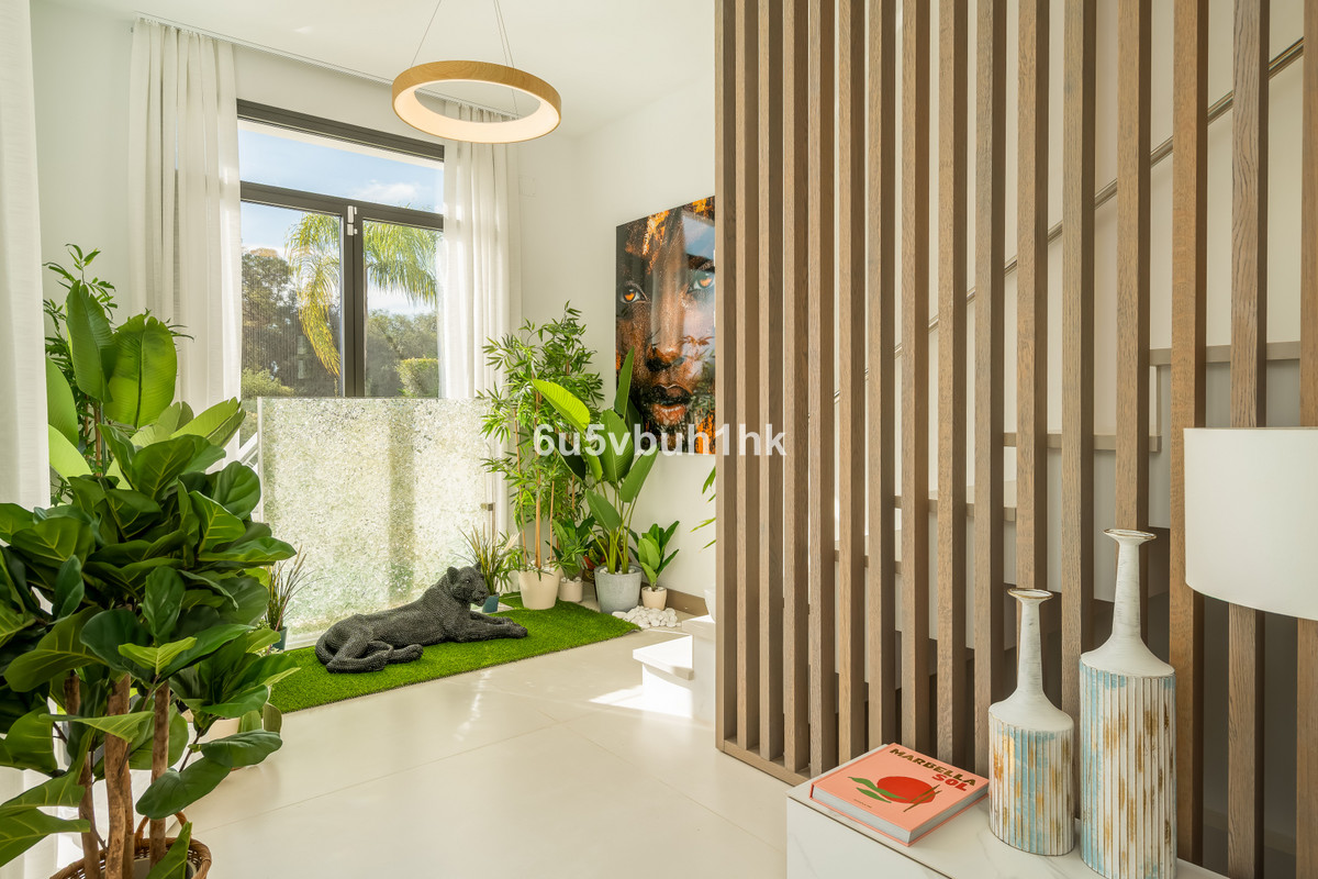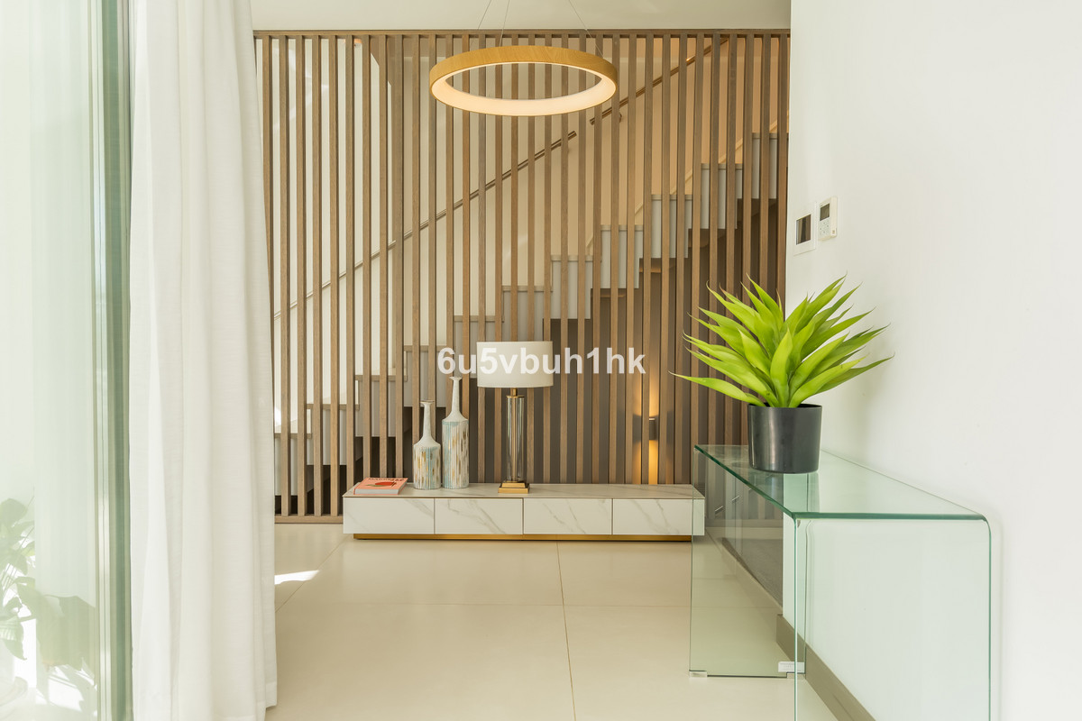 Bienvenue dans cette superbe villa moderne située à Monte Halcones, à proximité immédiate de La Zagaleta, quartier le plus exclusif et prestigieux d'Espagne et de Marbella. Cette résidence d'exception, avec ses cinq chambres et cinq salles de bains, allie une architecture avant-gardiste, une élégance intemporelle et une vue imprenable sur la mer, pour un style de vie marbellien par excellence. Implantée sur un terrain de 1 005 m², cette villa a été construite avec des matériaux de la plus haute qualité et un souci du détail exceptionnel. Elle est en parfait état et prête à être habitée dès le premier jour. Le niveau inférieur est conçu pour les loisirs et le divertissement, avec un bar élégant, un salon confortable et une salle de cinéma, ainsi que deux chambres spacieuses, chacune avec sa propre salle de bains privative, parfaites pour la famille ou les invités. Au rez-de-chaussée, le séjour et la salle à manger décloisonnés s'ouvrent harmonieusement sur une cuisine moderne et élégante, baignés de lumière naturelle grâce à de grandes baies vitrées. Celles-ci donnent directement sur la piscine, la terrasse et le jardin luxuriant, créant un cadre idéal pour une vie méditerranéenne décontractée. Ce niveau comprend également une chambre avec salle de bains privative, pratique au quotidien. À l'étage, vous découvrirez deux élégantes suites, dont une suite parentale spectaculaire avec une luxueuse salle de bains privative, un espace généreux et une terrasse privée. Cet étage offre également une terrasse panoramique avec vue imprenable sur la mer, l'endroit idéal pour admirer les magnifiques levers de soleil de Marbella. La villa est équipée d'un ascenseur privé, d'un garage fermé pour deux voitures et d'un parking supplémentaire sous l'abri pour deux autres véhicules. Située à Monte Halcones, cette propriété bénéficie du calme, de l'intimité et de la proximité des terrains de golf les plus exclusifs de la région, notamment Las Brisas, Los Naranjos et La Zagaleta Golf, et se trouve à distance de marche des bars et des magasins, tout en étant à quelques minutes en voiture du Golden Mile de Marbella et de ses plages de sable fin. C'est bien plus qu'une simple maison : c'est l'expression d'une élégance moderne, d'un confort absolu et d'une beauté côtière incomparable, nichée dans l'un des emplacements les plus privilégiés de Marbella. Monte Halcones est un quartier résidentiel exclusif à flanc de colline à Benahavís, jouxtant le prestigieux domaine de La Zagaleta et à quelques minutes en voiture de San Pedro, Marbella et Puerto Banús. Il offre des vues imprenables sur la mer Méditerranée et le mont La Concha, alliant luxe et tranquillité dans un cadre naturel préservé. Le quartier dispose d'un petit centre commercial avec restaurants, cafés et boutiques, pour un confort optimal au quotidien. Grâce à son emplacement privilégié, sa sécurité renforcée et sa proximité avec les golfs, les plages et les écoles internationales, Monte Halcones s'impose comme l'un des quartiers résidentiels les plus prisés de la Costa del Sol.