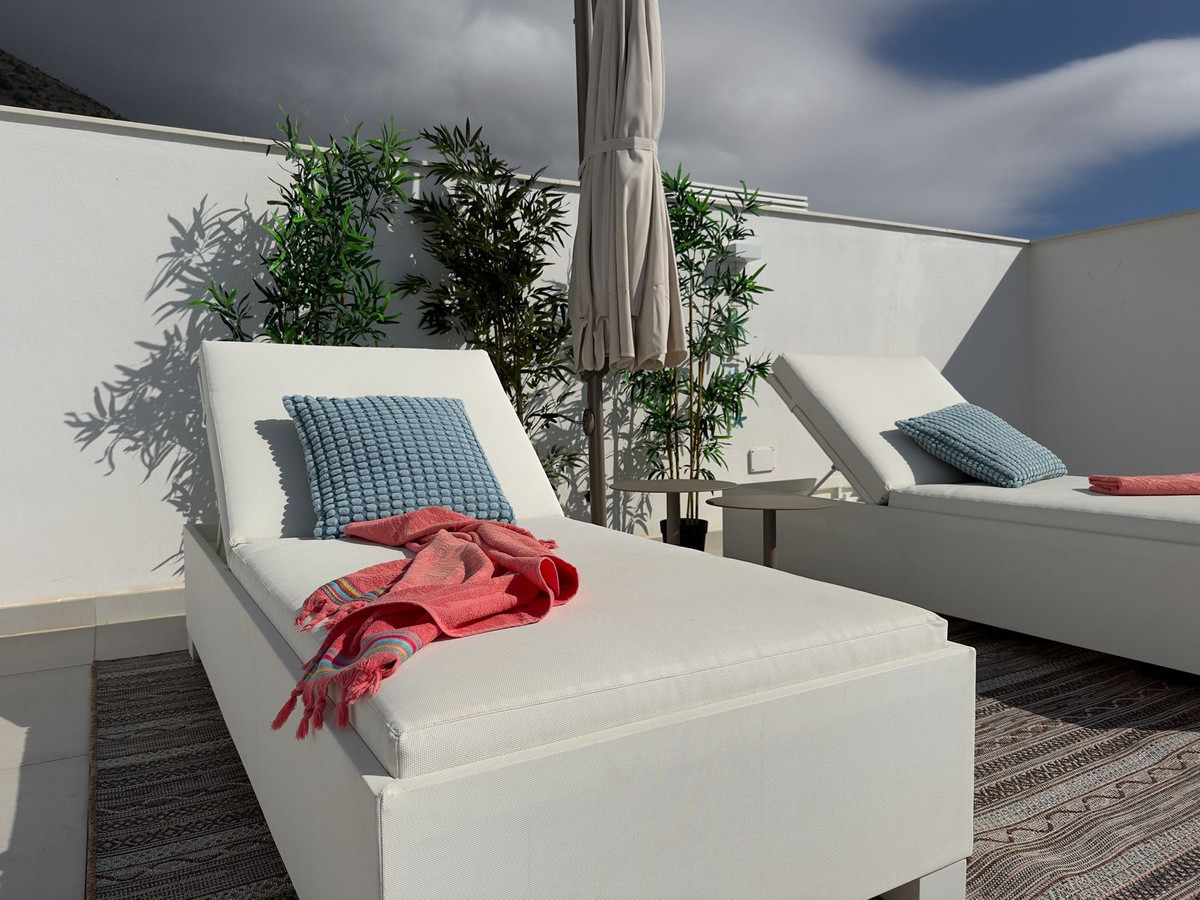 Indoor-outdoor living at its finest awaits in this southwest-facing duplex penthouse, located in the prestigious Higuerón West, an eco-sustainable gated resort surrounded by lush green areas and just minutes from the beach. Boasting 86 sqm of interior space and two expansive terraces — a 34 sqm partially covered terrace off the living room and a 45 sqm rooftop terrace — this home offers breathtaking panoramic views of the Mediterranean Sea, the Mijas Mountains, and the verdant green belt of the urbanisation.